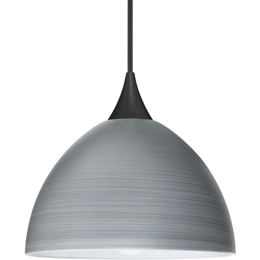 The Eros Pendant from Geo Contemporary presents a bell-shaped design with a textured surface. It has a ribbed exterior, and the gentle curves of the shade flow smoothly from top to bottom, culminating in a wide opening that directs light downward. This pendant hangs from a single cord, allowing for easy adjustment of hanging height. The fixture's understated form makes it suitable for various spaces, from kitchens to living rooms. Its design allows it to be used individually or grouped in clusters for a more dramatic effect.