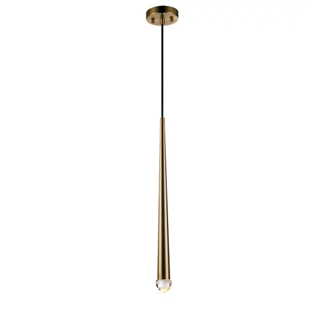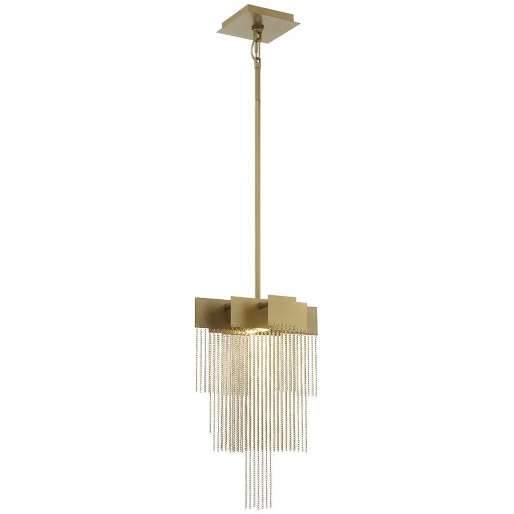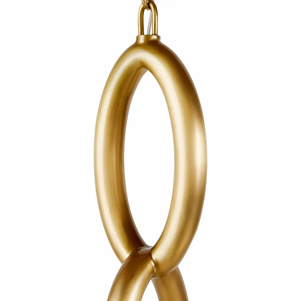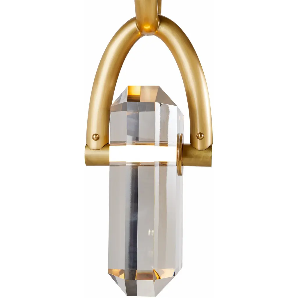 A thick chain of antique brass steel links together to form a stylish setting for our Estate pendant. Designed to hold a faceted LED-lit gem of smoke crystal, this impactful fixture is jewelry for the home.
