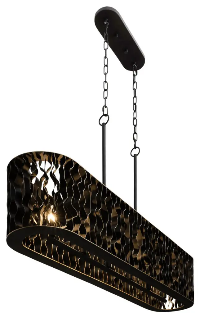 In their journeys through the Smithsonian Pollinator Garden, the designers at Varaluz reminisced about the many trails explored, both figuratively and literally. The word "estela" is a translation for the word "trail," and this collection takes its inspiration from many of them and the nature surrounding them. Now all paths have converged in the Estela collection. We invite you to wander the cascading paths created by this new collection, where you''re sure to find your own path to enlightenment. For anyone looking for an inspired modern fixtures design, all trails lead to Varaluz. Estela features doubled up recycled wavy steel vanes finished in black with a slight gold edging inspired by the beauty of the Monarch butterfly. Smithsonian Collaboration. Repurposed Galvanized Steel. Hand-finished in Matte Black with French Gold Details.