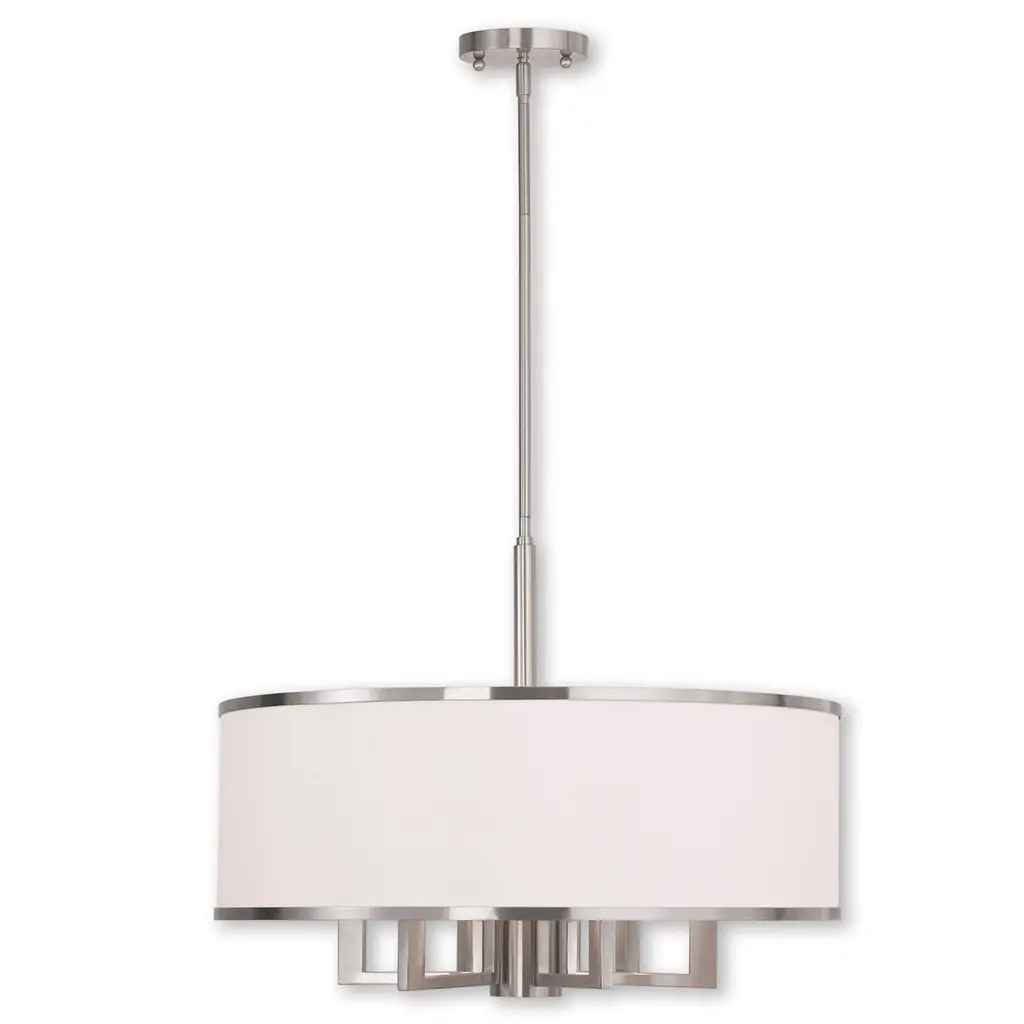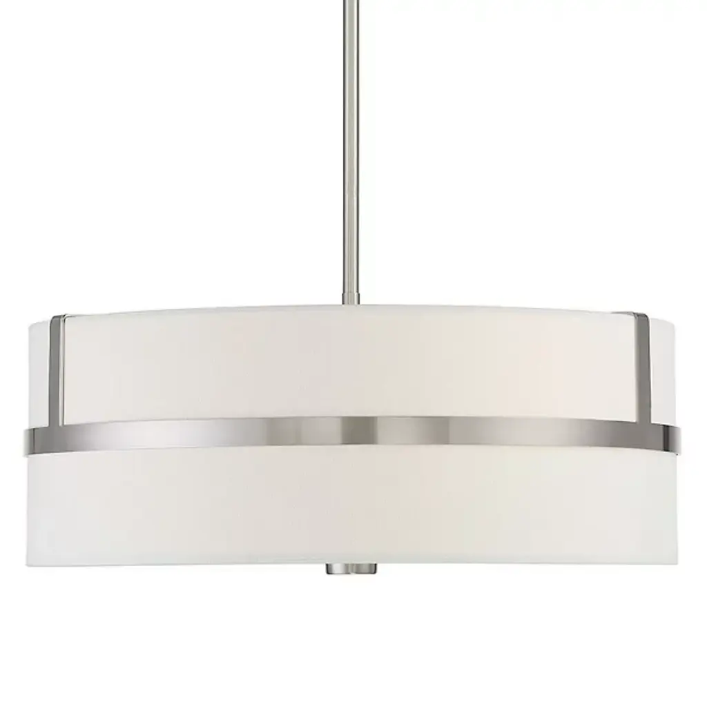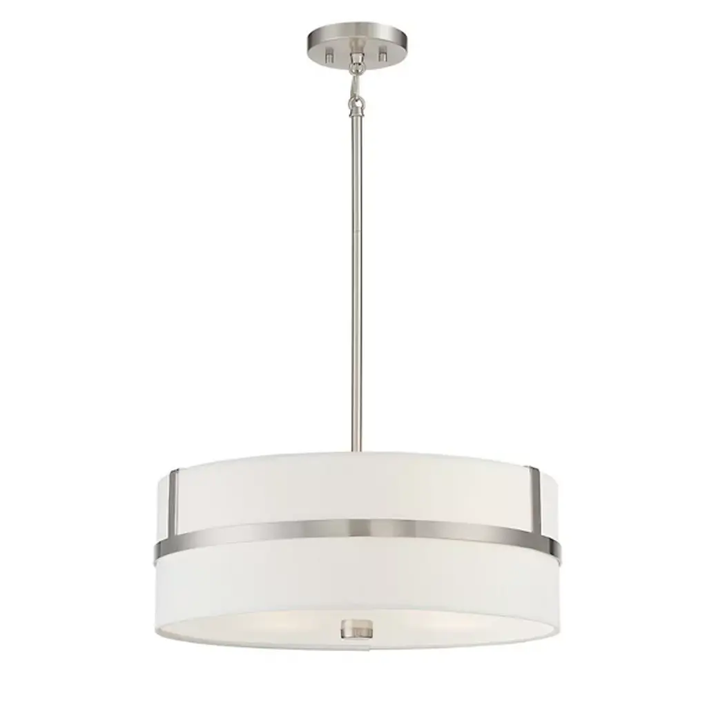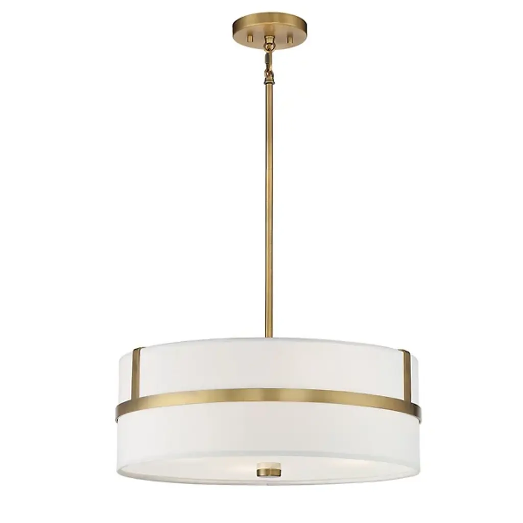 Sleek lines and smooth curves make the Estelle Pendant from Alder & Ore an elegant addition to modern interiors. Simple with a transitional touch, this fixture is anchored in place by a circular metal canopy that sends a thin stem down to its light source. A drum-shaped frosted diffuser is held at the end of the stem, accented by slender bands of metal that extend from the top of the piece. Its warm light is evenly filtered in every direction, creating an elevated atmosphere and practical lighting solution.