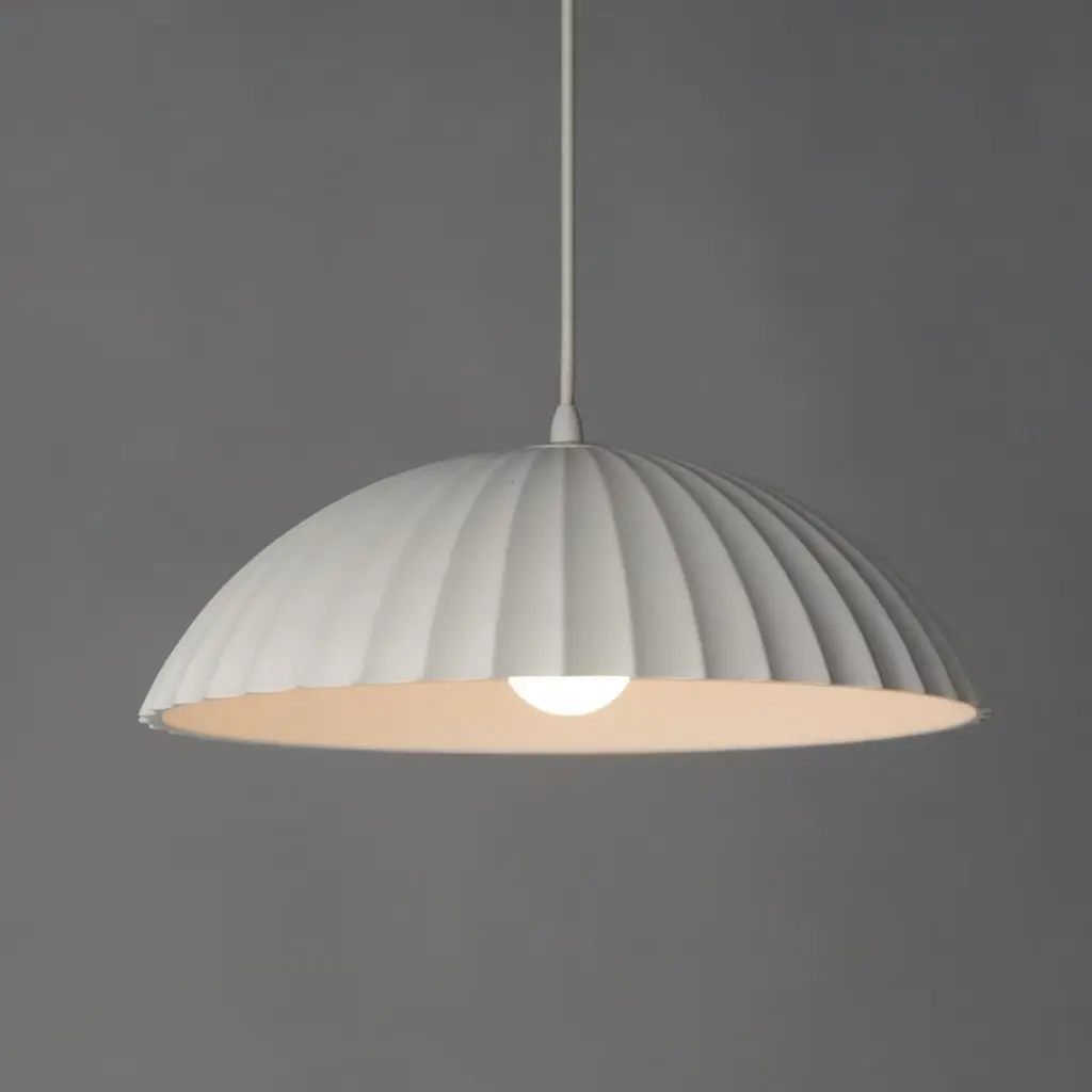 Architecturally inspired, these scalloped domes demonstrate biophilic, coastal, and archetypal geometry in their form. Constructed of concrete in a neutral Chalky White finish, the collection complements a variety of interiors and shares a sophisticated playfulness in design. Available in two sizes of pendants as well as a coordinating wall sconce with LED lamping included.