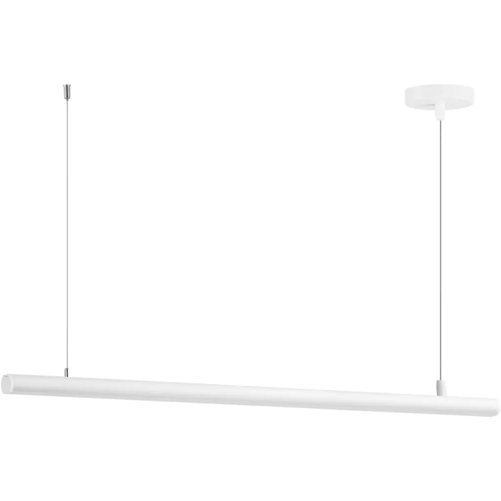 Elongated tubes of LED light are housed in incredibly small 1" diameter aluminum and suspended by nearly invisible support cables. Engineered to connect the various lengths end-to-end or with use of the rigid, angled adapters, adds endless applications for creativity and function. Each length includes a power feed within a surface mounted canopy and non-electrical support cables that standoff using ceiling anchors. With no additional power source components required, the continuous run pendants in this series are a welcome convenience for commercial applications. Lengths range from 36" to impressive 96" long. Individually, the fixtures provide ample lighting downward with minimal disruption to the architectural sight lines of a space. Available in Black, White, and brushed Aluminum finishes these are exemplary streamlined forms with functional purpose.