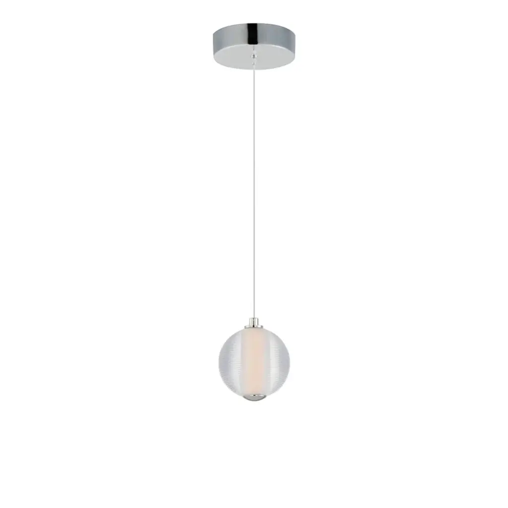 Ablaze with omnidirectional LED light radiating from the center of perfectly ribbed spheres, the lustrous glow within accentuates the repeating pattern on the glass' exterior. With minimal hardware visible outside the glass, select from Polished Chrome or Gold to match your interior's decor. Material: Glass, Finish Color: Polished Chrome, Width: 4.25", Height: 5", Length: 4.25", Lamping Type: LED, Number Of Bulbs: 1, Wattage: 5 Watts, Cri: 90, Color Temperature: 3000 Kelvin, Lumens: 250, Dimmable: Yes, Moisture Rating: Dry Rated