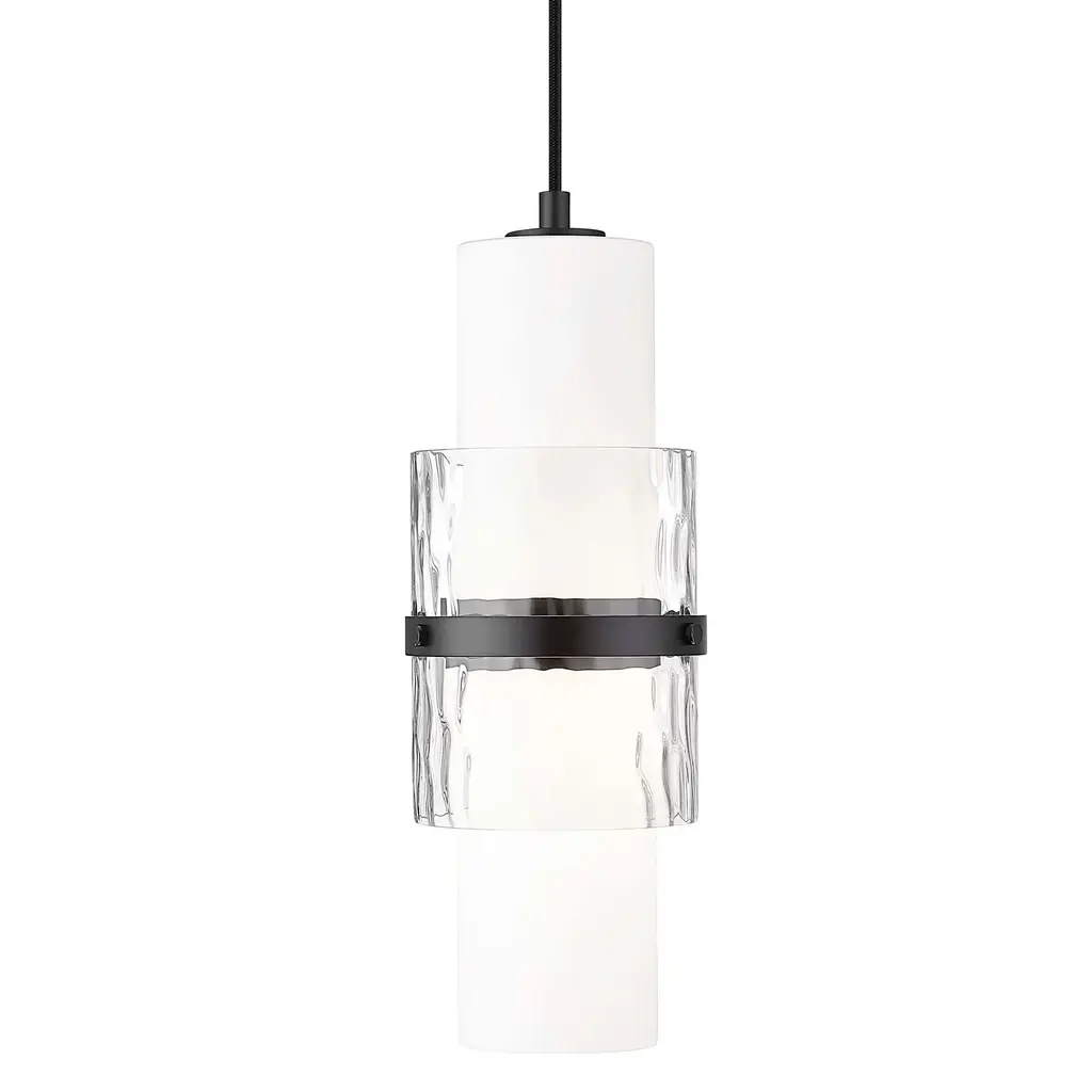 Segmented by bright LED rings finished in Matte Black, glass shades of an hourglass shape are combined into various configurations. The hand-blown glass is entirely transparent and varies in size creating an undulating pattern. All together, the series includes pendants, flush mounts, and portable lamps. Material: Glass, Finish Color: Black, Width: 8.75", Height: 44.25", Length: 8.75", Lamping Type: LED, Number Of Bulbs: 4, Wattage: 9 Watts, Cri: 90, Color Temperature: 3000 Kelvin, Lumens: 1350, Moisture Rating: Dry Rated