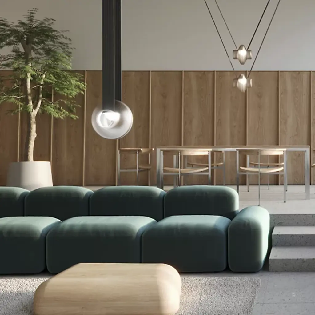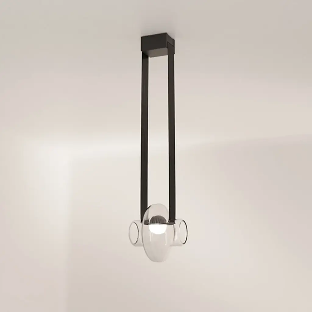 The Etat-des-Lieux 1A LED Pendant by Darmes is a stunning design by Alexandre Joncas. Inspired by the Laurentian Mountains and their reflection in nearby waters, this pendant has a poetic and modern nature that is infused with an innovative touch. Designed for Etat-des-Lieux, an exclusive strap that is elegant, flexible, and conductive artfully supports the beautiful handblown glass shade of this design and brings the light module within to life. The anodized aluminum and frosted glass module can be positioned to shine up or down, allowing light to playfully interact within the softly shaped glass around it.