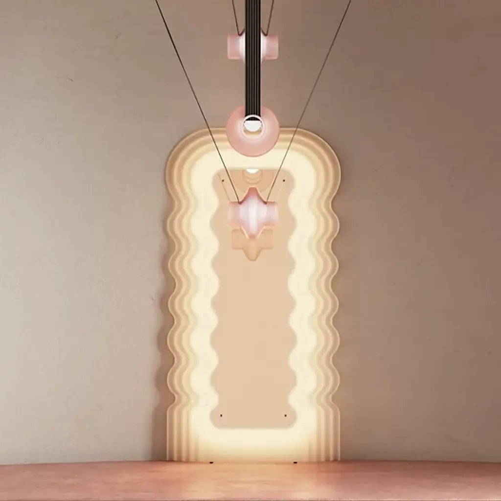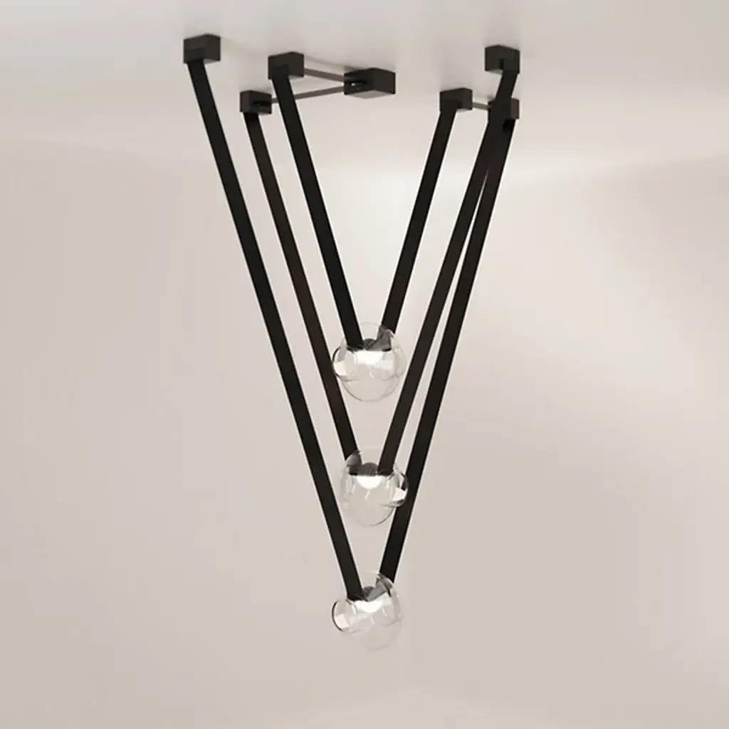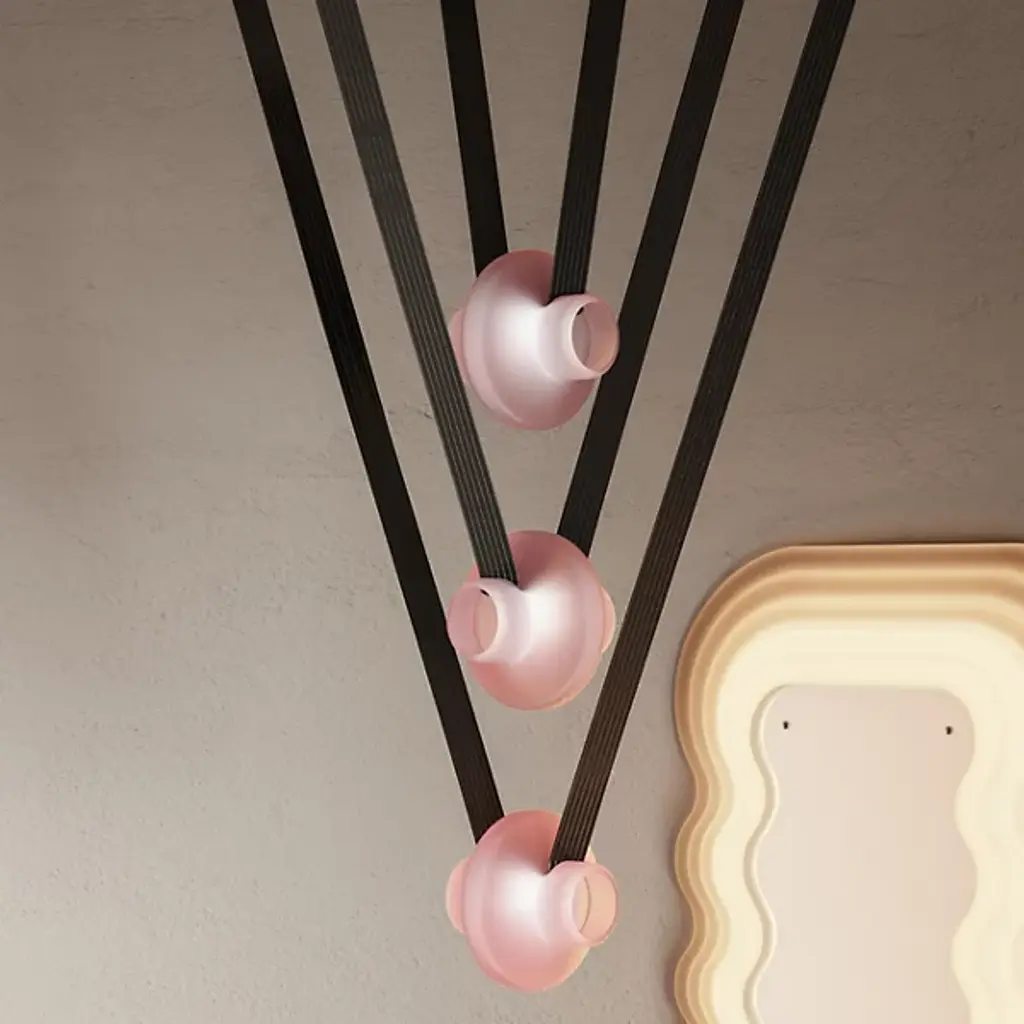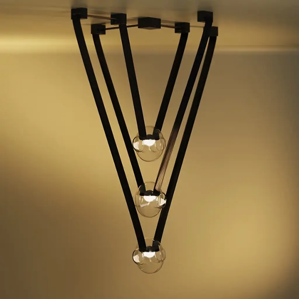 The Etat-des-Lieux 3A LED Multi-Light Pendant by Darmes is a stunning composition of hand blown glass with an innovative support system that was designed by Alexandre Joncas. Inspired by the landscape outside the D’Armes studio and the reflection of the Laurentian Mountains in nearby waters, the smooth, shapely silhouette of glass shades provide a playful space for an anodized aluminum and frosted glass module to shine within. A flexible, wide, and conductive strap made exclusively for Etat-des-Lieux suspends each piece, providing an elegant touch to this composition and powering each module, bringing this design to life.