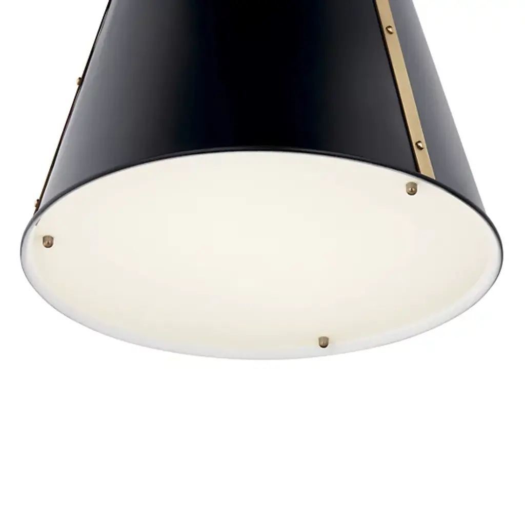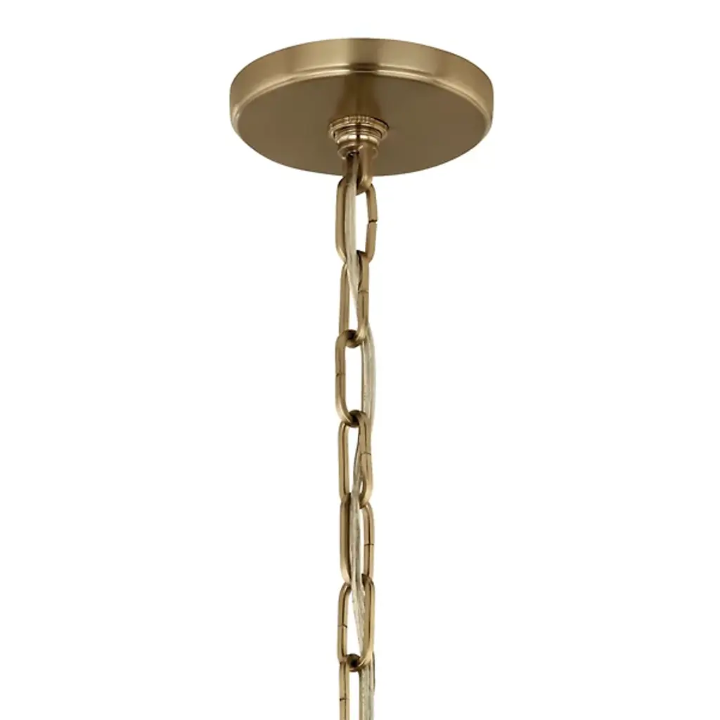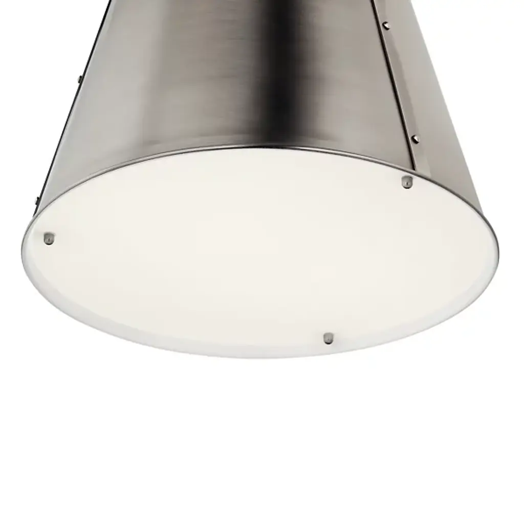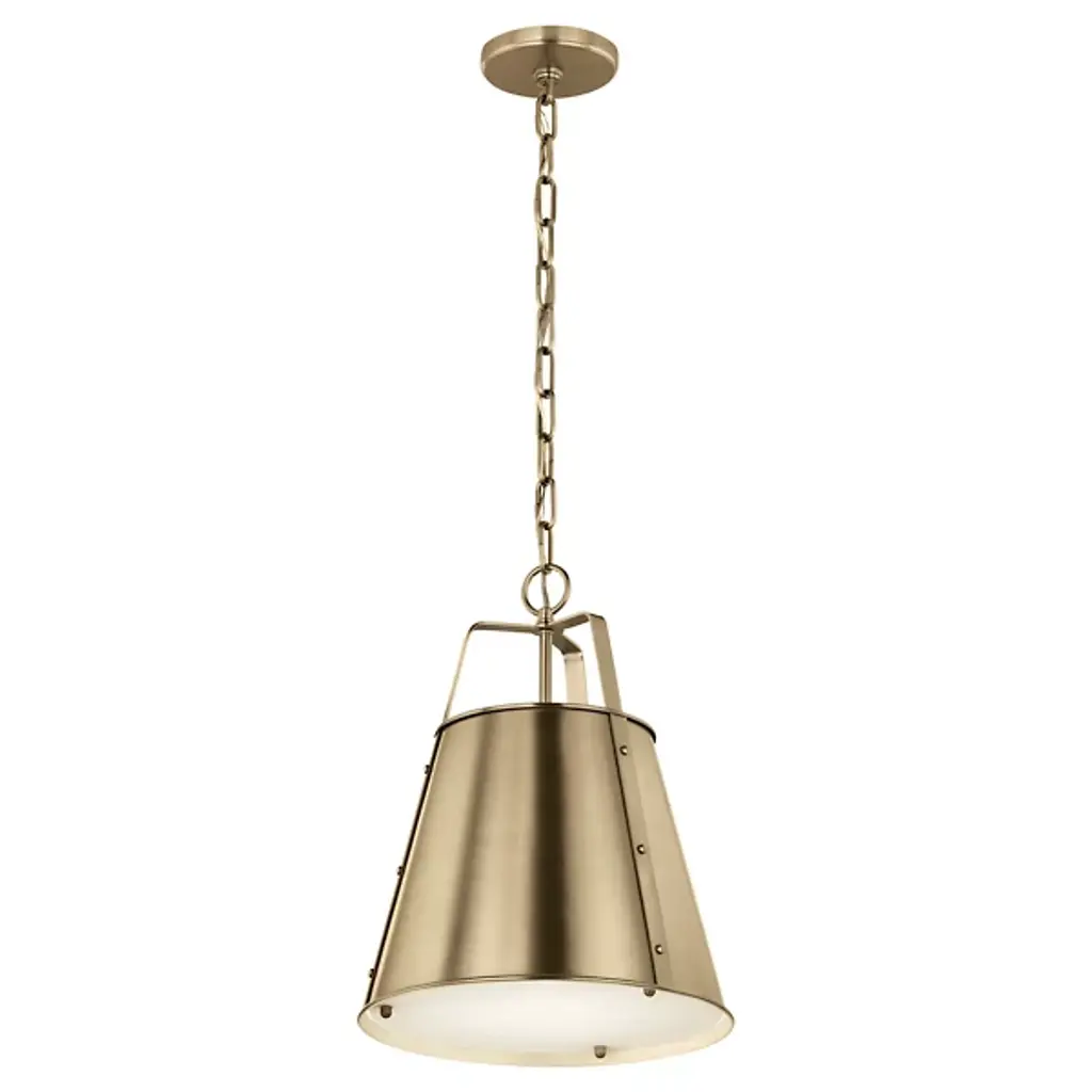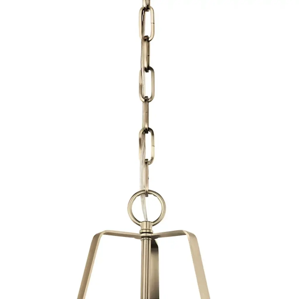 Evoking the elegance of a champagne bucket, the Etcher Pendant from Kichler boasts an elongated, tapered silhouette with a sleek exterior, merging classic charm with updated traditional style. Its distinctive square chain design, complemented by riveted details along the top, bottom, and sides, adds a touch of sophistication. This fixture includes an etched glass diffuser, ensuring a soft, even glow without glare, enhancing any space with its refined design and optimal illumination.