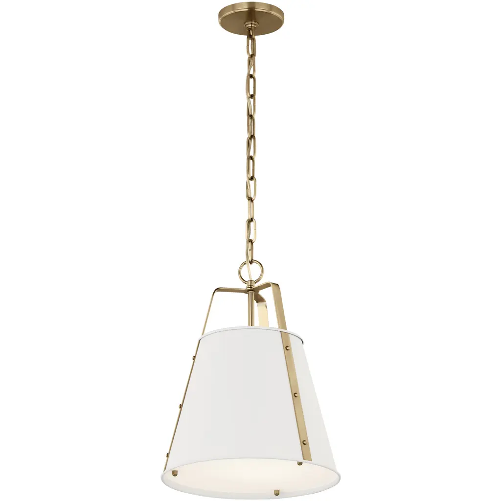 Evoking the elegance of a champagne bucket, the Etcher Pendant from Kichler boasts an elongated, tapered silhouette with a sleek exterior, merging classic charm with updated traditional style. Its distinctive square chain design, complemented by riveted details along the top, bottom, and sides, adds a touch of sophistication. This fixture includes an etched glass diffuser, ensuring a soft, even glow without glare, enhancing any space with its refined design and optimal illumination.