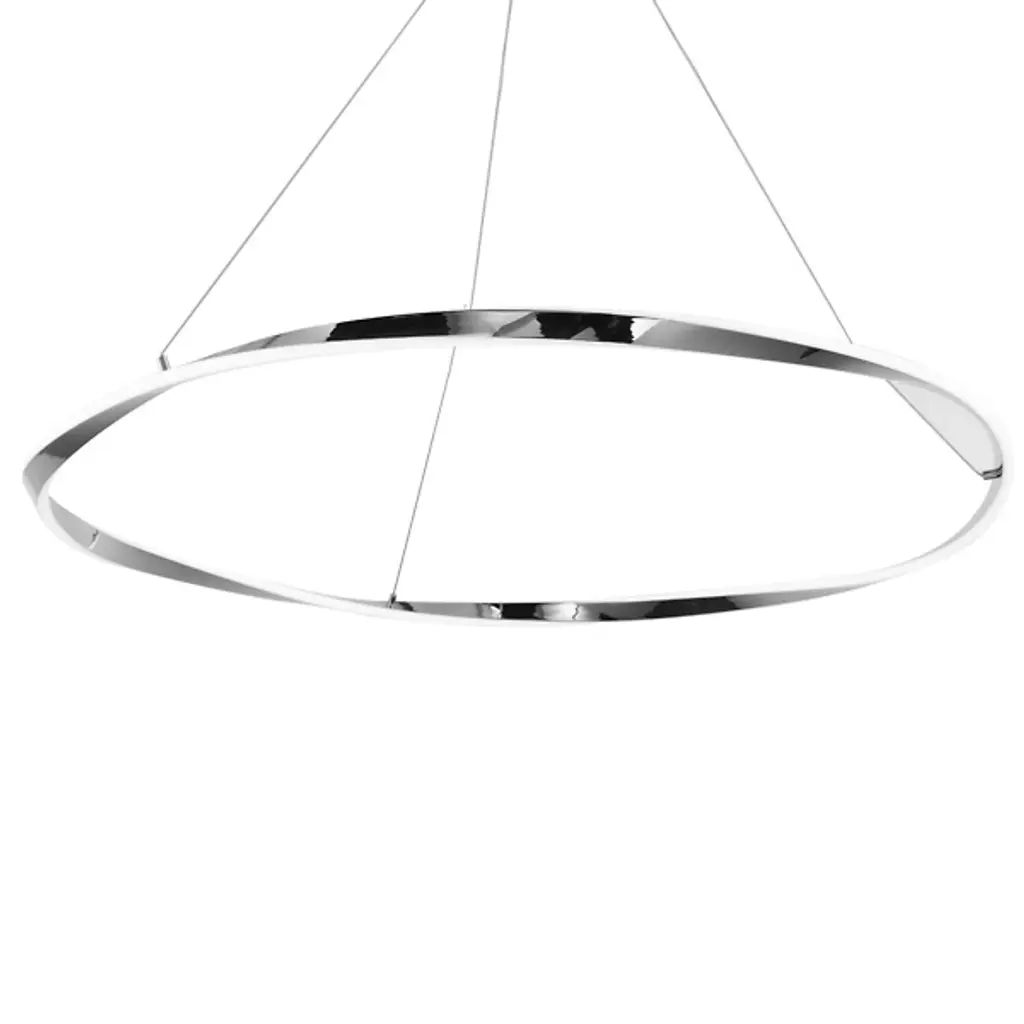 Mind-bendingly beautiful. Space and time cease when you look at the mesmerizing, Mobius strip-inspired Eternal LED Pendant from dweLED. There is no start or end with this piece; it simply delights from any point your eyes decide to begin their journey. One continuous steel housing moves in a series of organic twists and turns in a striking loop silhouette. In for the ride is an ultra-slim LED module and silicone diffuser that hug the housing's crisp edges. The cutting-edge LEDs generate a clean, sensuous glow ideal in the dining room or kitchen.
