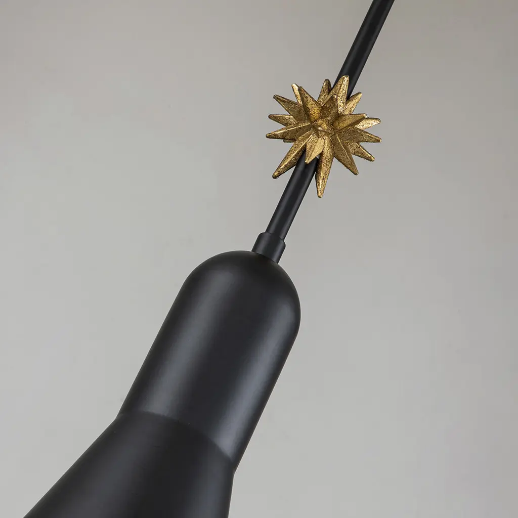 Etoile Small 1 Light Pendant in Aged Black with gilded star accent. Adjustable height. Perfect all around the house.