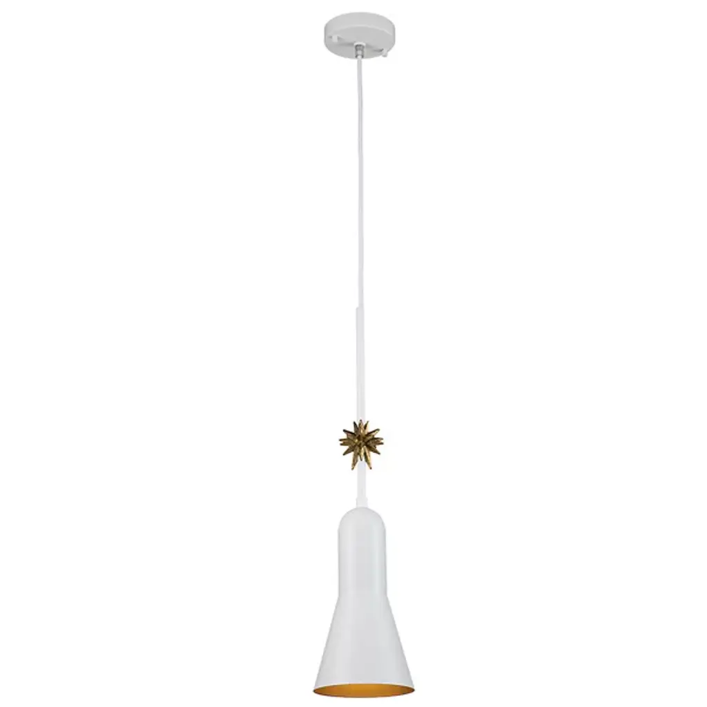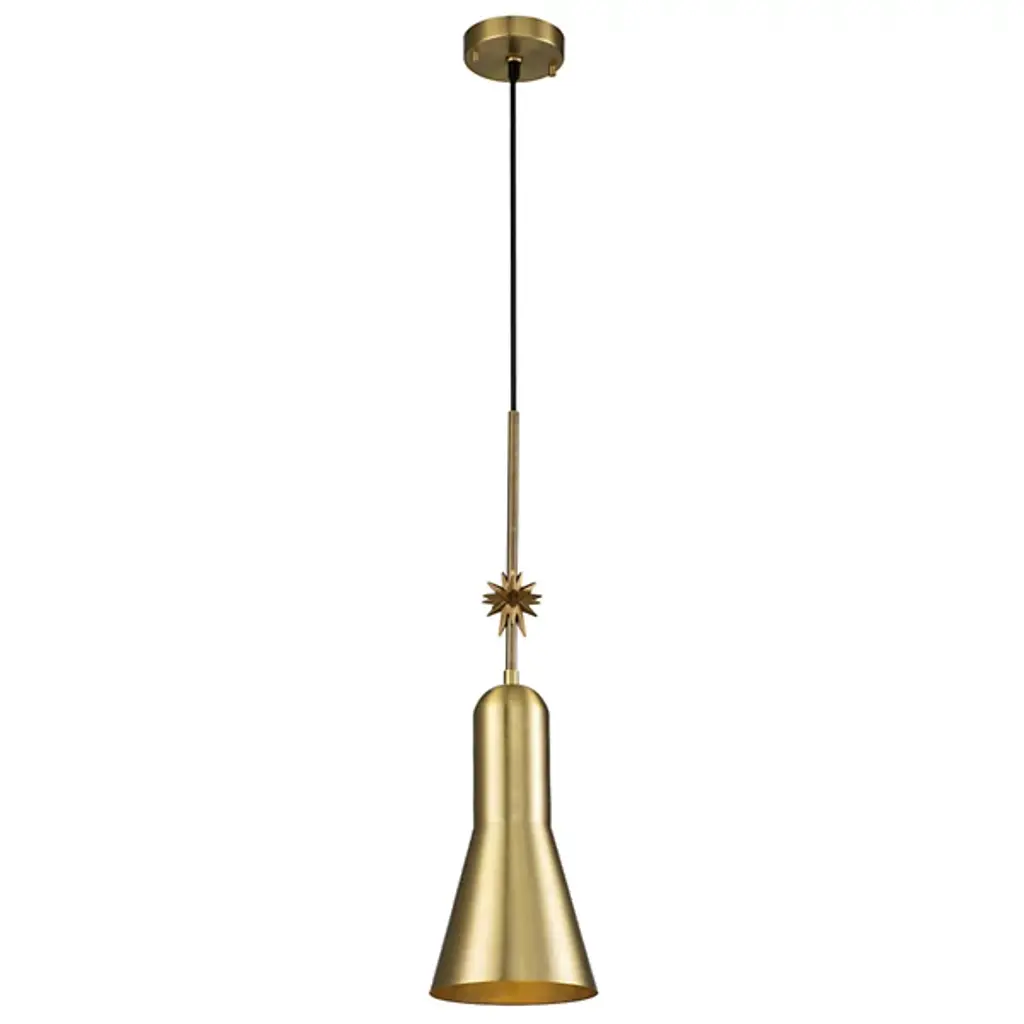 The Etoille Mini Pendant from Lucas McKearn blends industrial aesthetics and celestial elegance. Crafted from durable steel, the elegantly tapered shade encases a brilliant LED, casting a warm and inviting glow. The star-like embellishment above the shade adds charm, making it a standout piece in your living space. Suspended by a downrod attached to a ceiling canopy, this pendant illuminates your surroundings and brings a stunning design element to your home. Adjust the brightness level with a separately sold ELV dimmer.