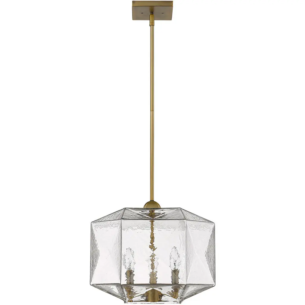 Faceted glass defines the dramatic beauty of the Euclid pendant collection. Aged brass pairs with asymmetric panels of mercury glass for a perfect throwback to a mid-century modern classic. Combine that with vintage Edison style filament bulbs to complete the look. Height is adjustable with the included down rods compatible with sloped ceilings. These pendants would be a stunning addition to any kitchen, dining area, or foyer.