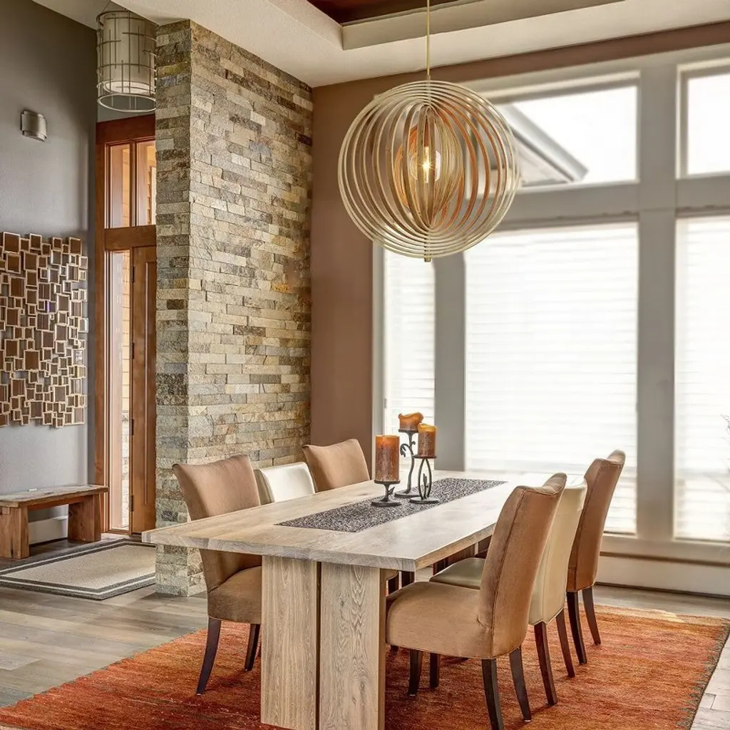 Abruzzo 1-Light Medium Pendant, Weathered Grey Finish with Sleek retractable natural wood rings encase ambient lighting. Product Type: Pendant / Fixture Style: Transitional / Fixture Shape: Round / Hanging Support Type: Wire / Hanging Support Length: 72 inches / Cable/Wire Length: 72 inches / Chain Length: 72 inches / Slope Ceiling Compatible: Yes / Mounting Type: J-BOX / Location Type: DRY Location / Bulbs Included: No / Dimmable: YES / More information: 1 x 60W/A19 E26/120V (dimmable) / More Information: Weathered Grey Wood Shades Included / More Information: Hanging Support Type: Wire / More Information: Rated for dry locations / Canopy Backplate Height: 1 Inches / Canopy Backplate Diameter: 6 Inches . ,