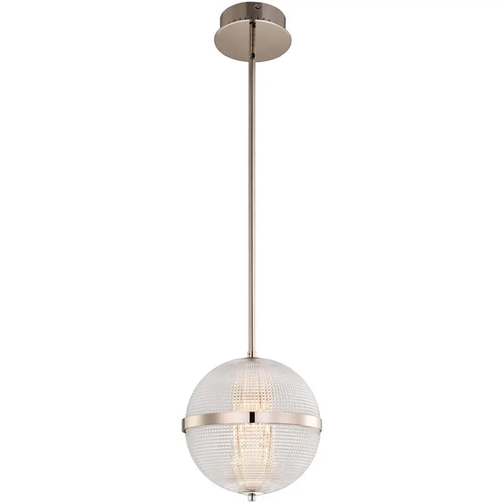 A fascinating globe fixture, Atomo offers a unique and proprietary LED lamping called CRYSTAL PITCH. Faceted crystal gears surround the LED light source to emit a spectacular refraction within the glass globe. Individually stepped and segmented crystal pitch create the center cylinder / Crystal Pitch is a patent pending design / Pendant hanging height is adjustable / The center crystal cylinder drives light throughout the glass globe / The juxpositon of the linear cylinder and the glass globe adds to reflects the contrasts in modern design. ,
