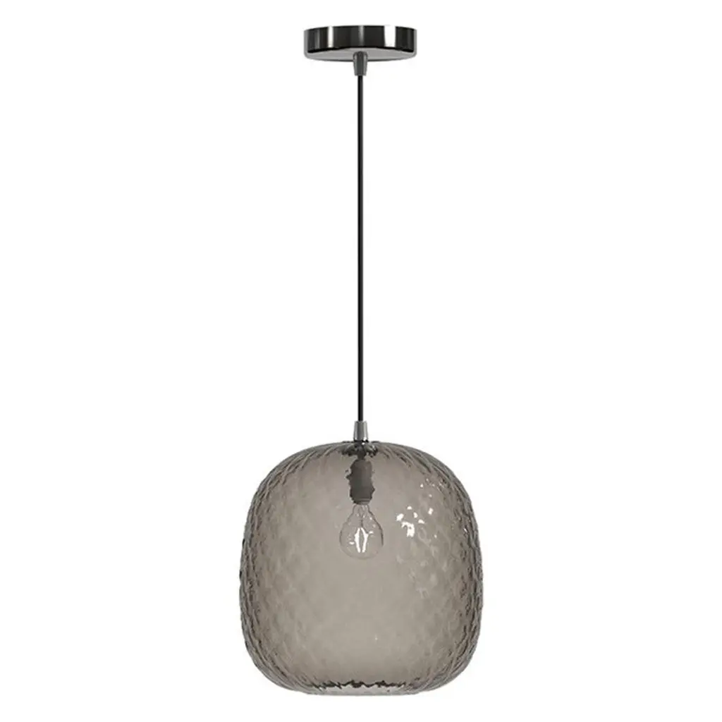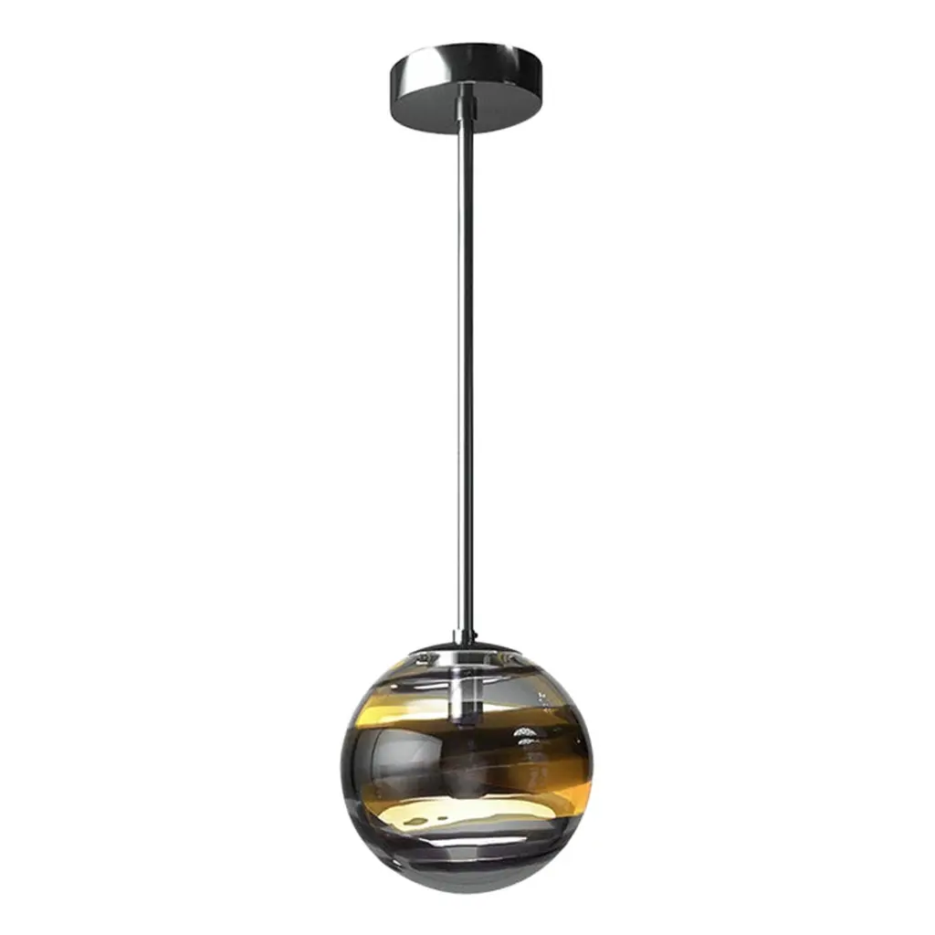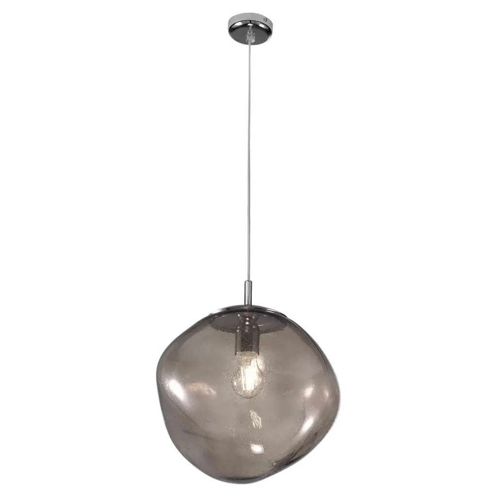 Bankwell 1-Light Pendant with Asymmetrical hand-blown globs of glass in various colors. Product Type: Pendant / Fixture Style: Contemporary / Fixture Shape: Round / Shade Type: Hand-blown / Hanging Support Type: Wire / Hanging Support Length: 72 inches / Cable/Wire Length: 72 inches / Chain Length: 72 inches / Slope Ceiling Compatible: Yes / Mounting Type: J-BOX / Location Type: DRY Location / Bulbs Included: No / Dimmable: YES / More information: 1 x 60W/A19 E26/120V (dimmable) / More Information: Hand-blown Glass Included Available in Copper, Chrome, OR Gold / More Information: Hanging Support Type: Wire / More Information: Rated for dry locations / Canopy Backplate Height: 1 Inches / Canopy Backplate Diameter: 6 Inches . ,