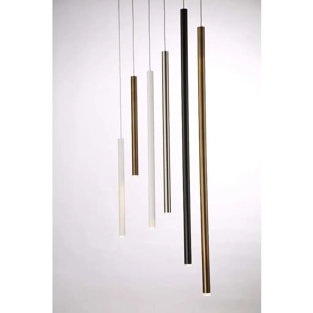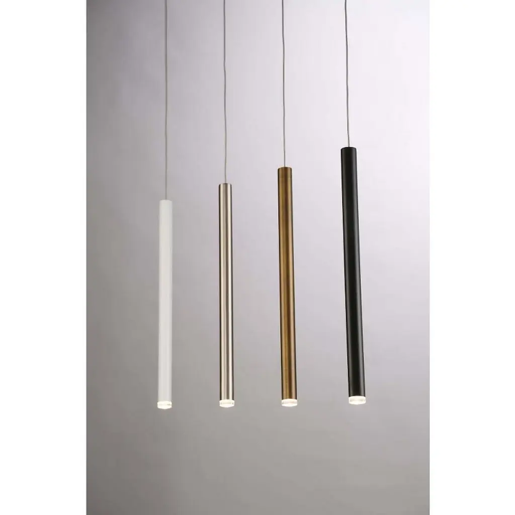 Navada 1-Light Small LED Pendant with Slender lengths of sleek LED spots. Product Type: Pendant / Fixture Style: Contemporary / Fixture Shape: Round / Hanging Support Type: Wire / Hanging Support Length: 96 inches / Cable/Wire Length: 96 inches / Chain Length: 96 inches / Slope Ceiling Compatible: Yes / Mounting Type: J-BOX / Location Type: DRY Location / Bulbs Included: Yes / Lumens: 250 / Bulb Kelvin: 3000 / Dimmable: NO / More information: 3W/LED 3000K/250lm (non-dimmable) / More Information: Metal Tubes Shades Included / More Information: Hanging Support Type: Wire / More Information: Rated for dry locations / Canopy Backplate Height: 1 Inches / Canopy Backplate Diameter: 4.75 Inches . ,