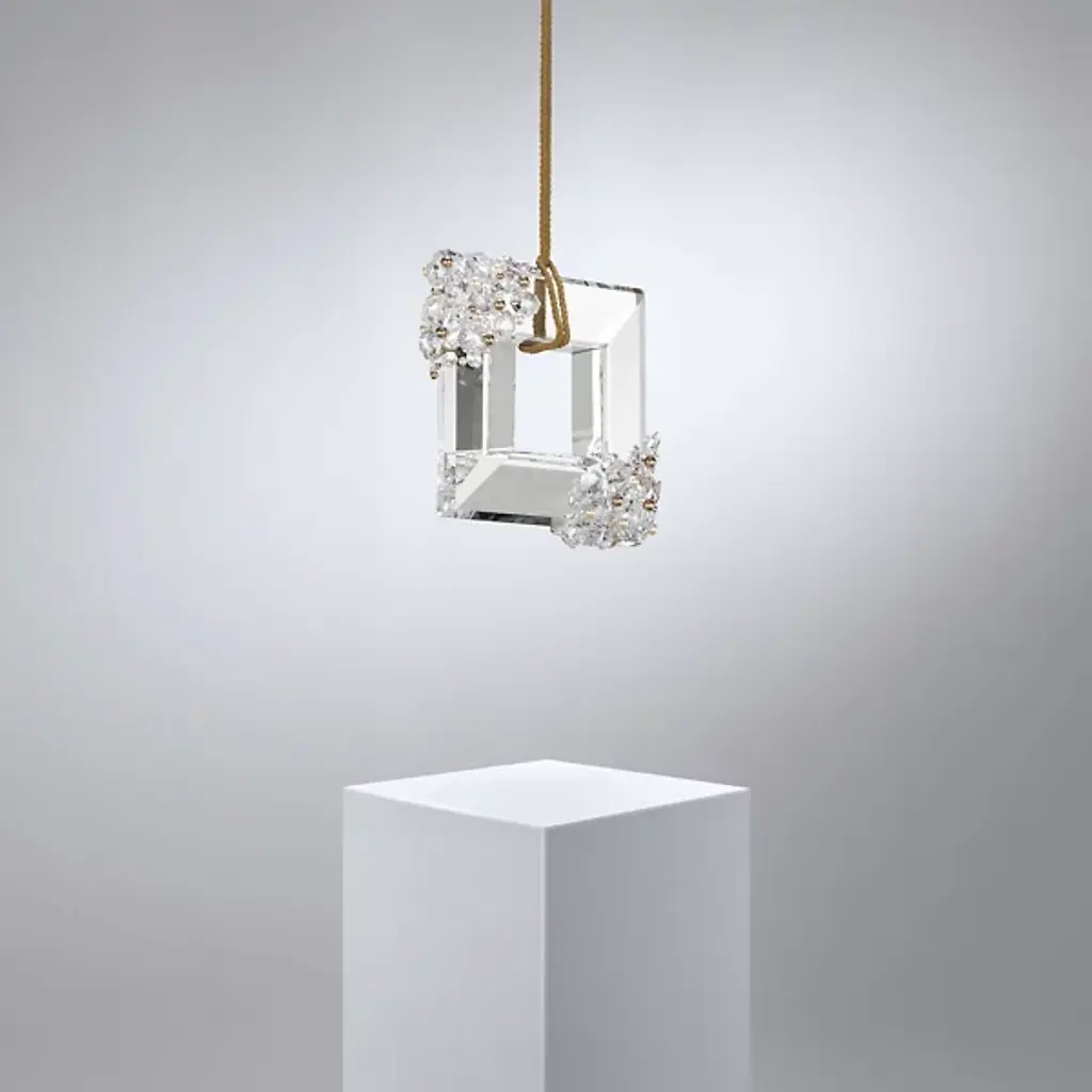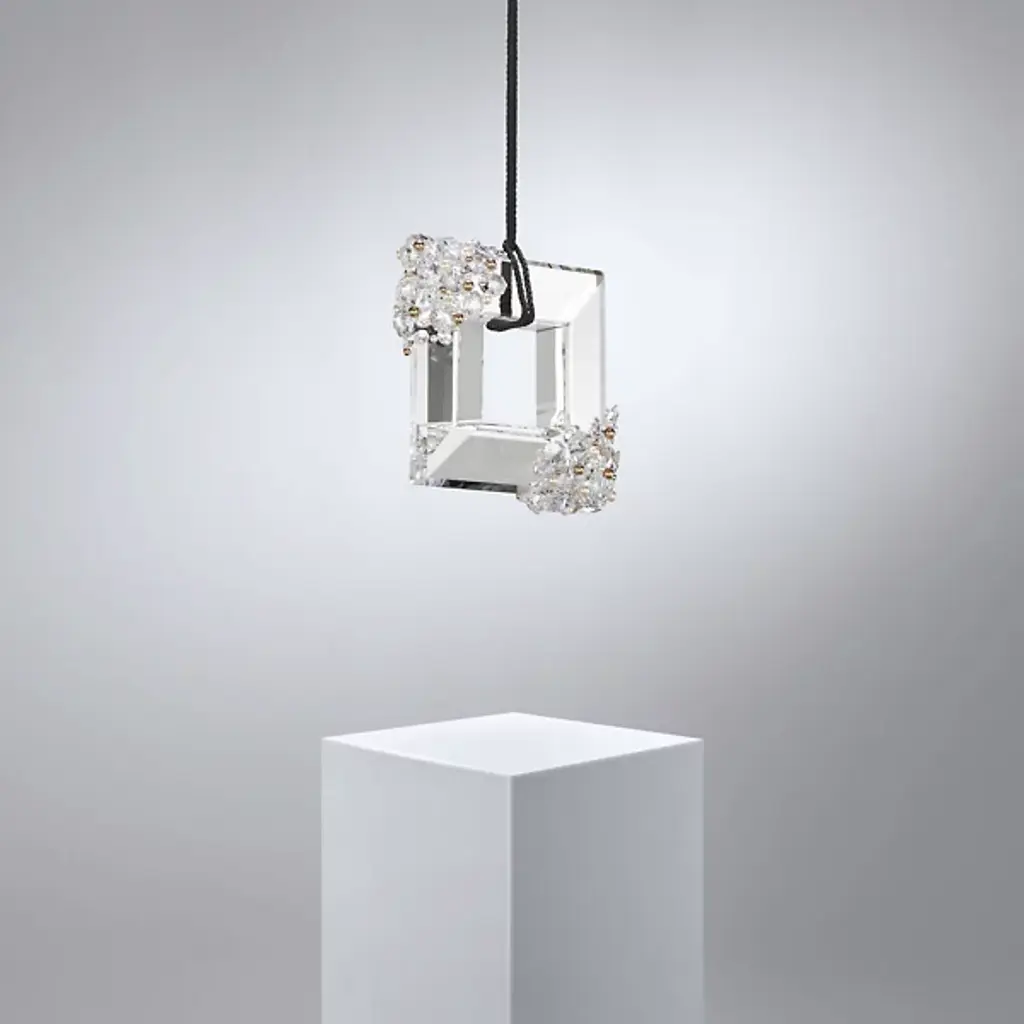 The Eva LED Pendant from Schonbek Forever is adorned with clusters of Schonbek Radiance crystals and Swarovski pearls, featuring an impeccable crystal square as its centerpiece. Crafted with precision, this fixture features adjustable color temperatures and sloped ceiling adaptability. The LED illumination shines across each surface, producing an impressive spectacle of shifting tints, and the pendant's luxurious braided nylon rope and the concealed driver ensure a smooth contour.