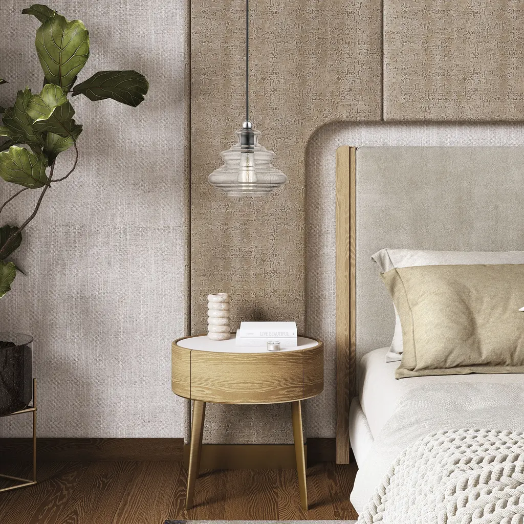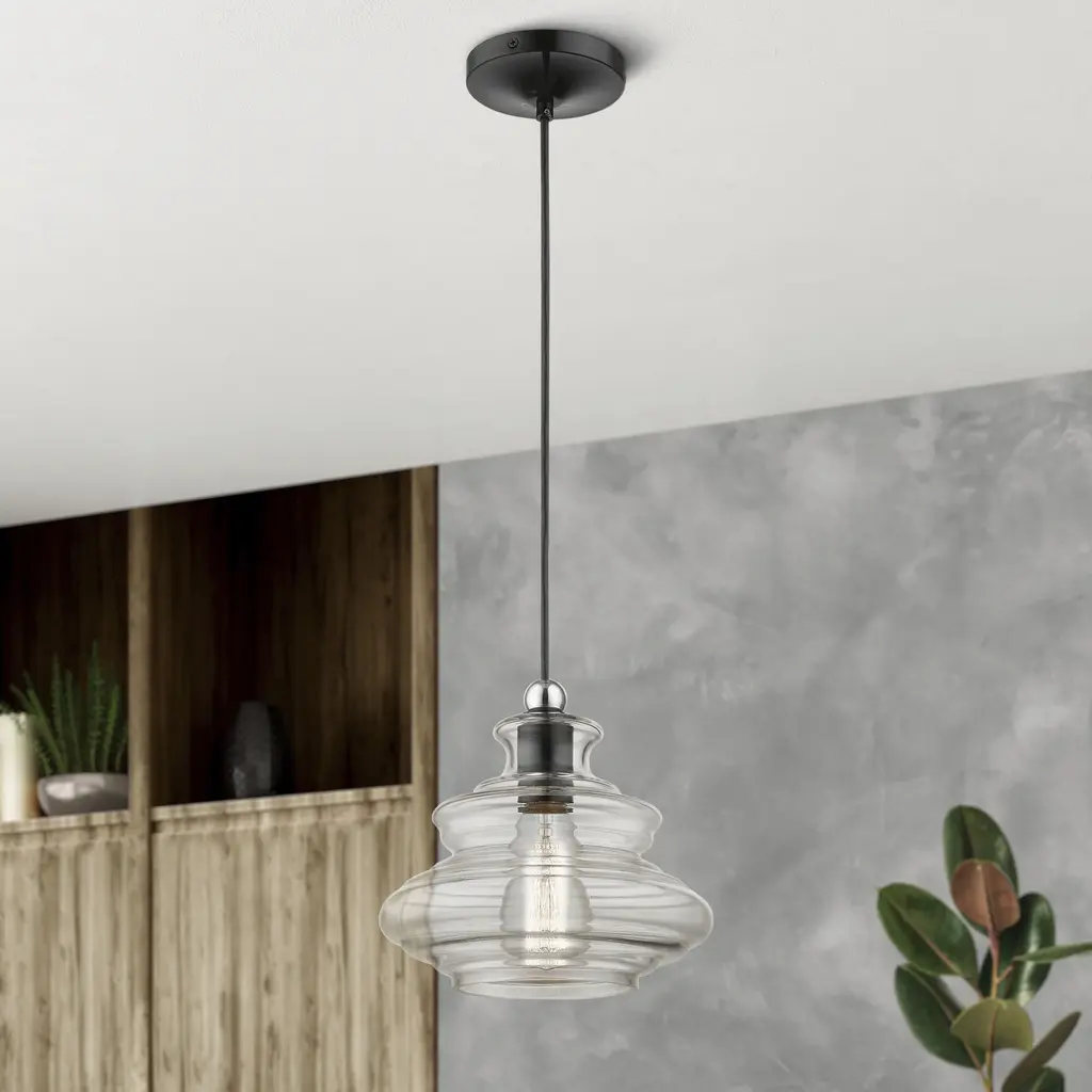 1 Light Shiny Black Pendant with Chrome Finish Accents