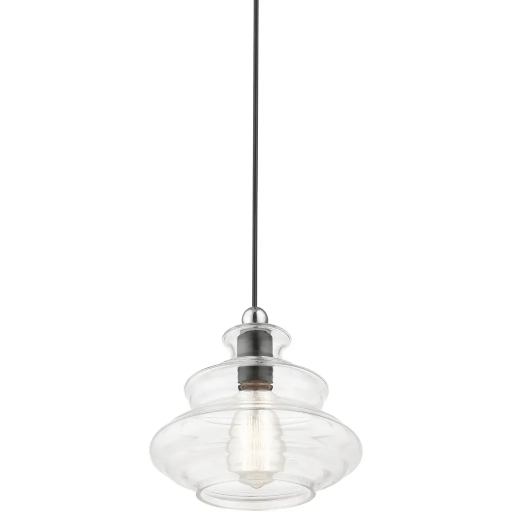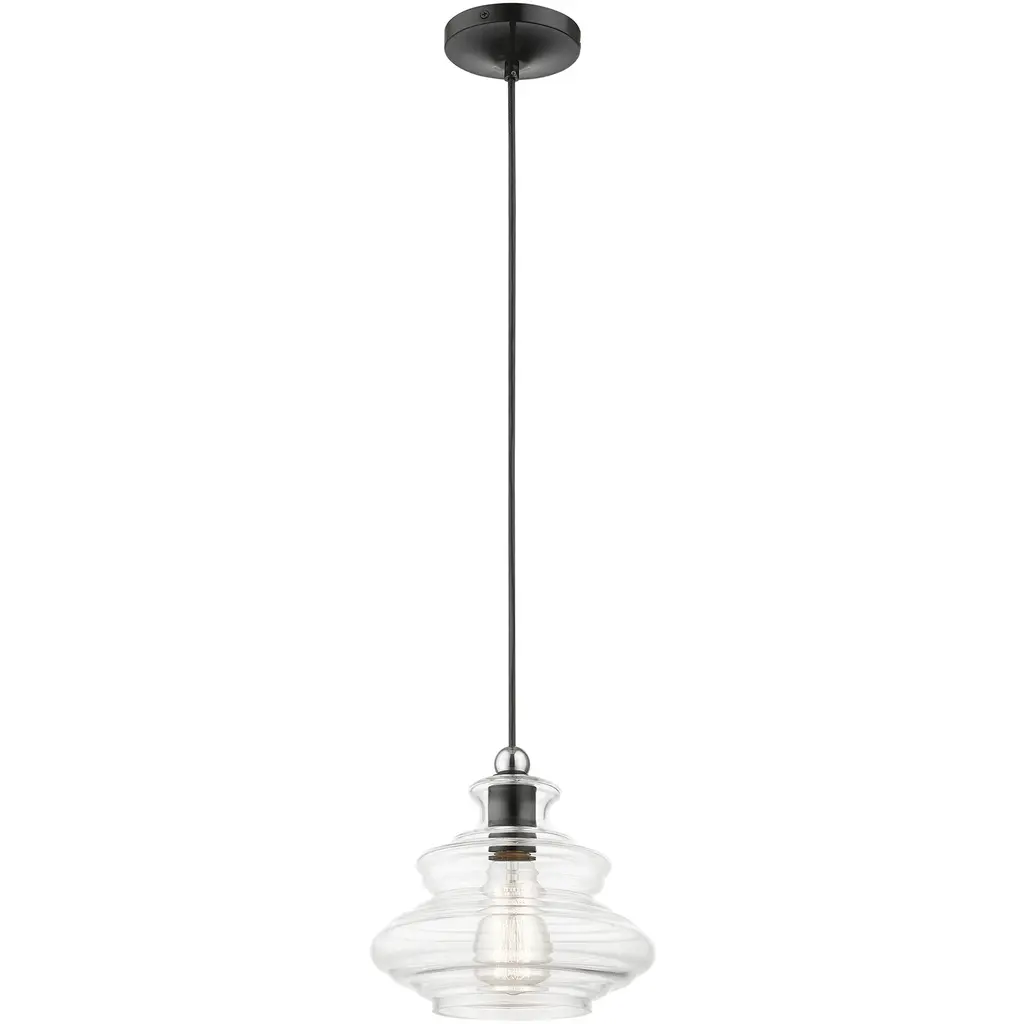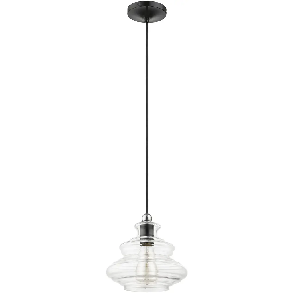 Everett 1 Light 9 Inch Shiny Black With Chrome Finish Accents Pendant Ceiling Light