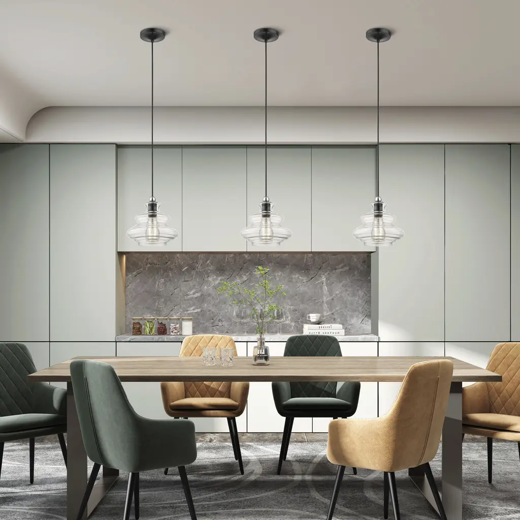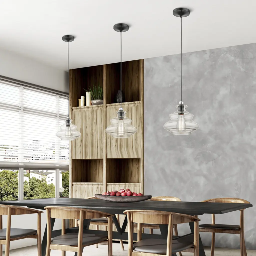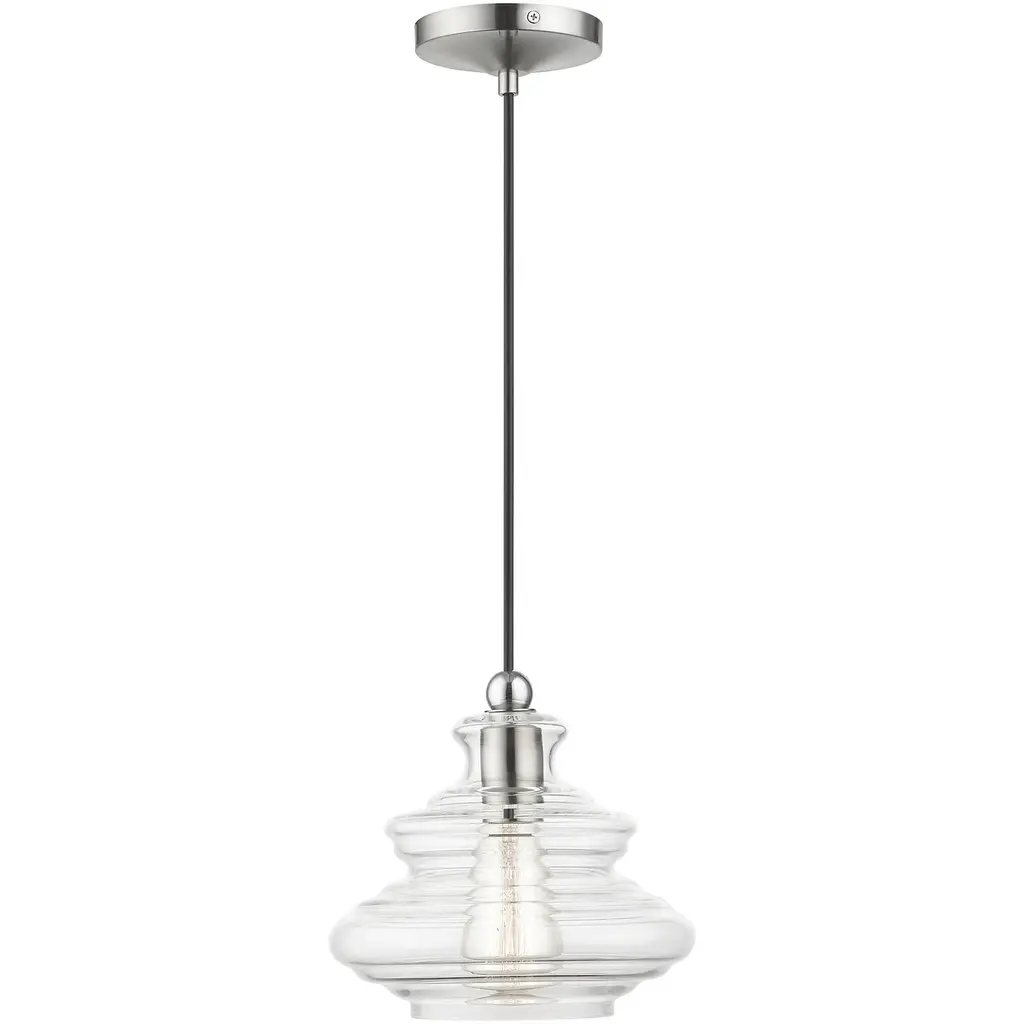 Everett 1 Light 9 Inch Shiny Black With Chrome Finish Accents Pendant Ceiling Light