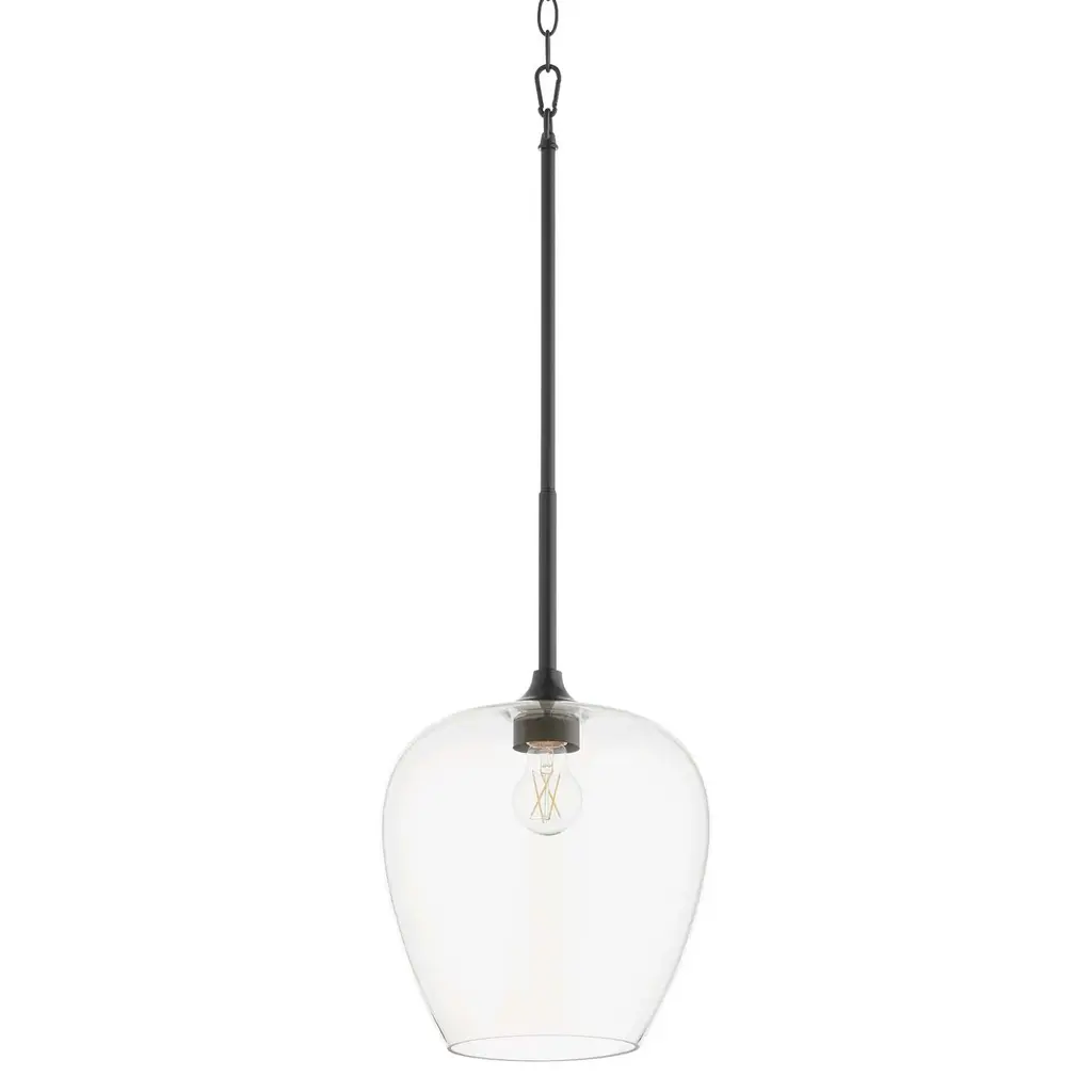 The design of this 1 light pendant from Everly collection is based on decorative blown glass containers. It features clear glass and is made memorable with the use of vintage squirrel cage filament lamps. Contemporary or traditional, this pendant can be used singularly or in multiples to elevate every room.