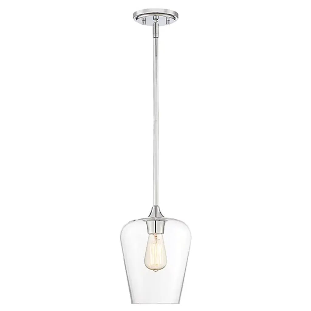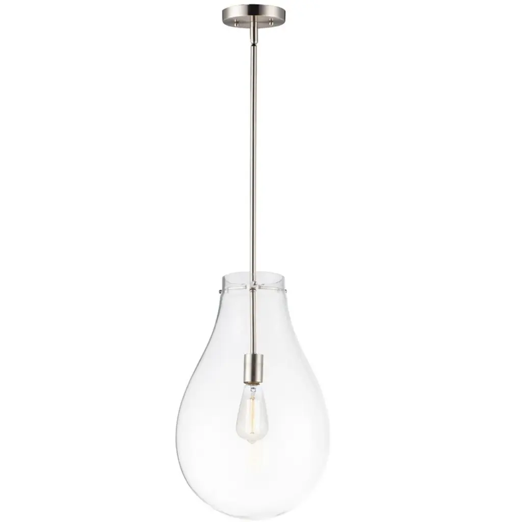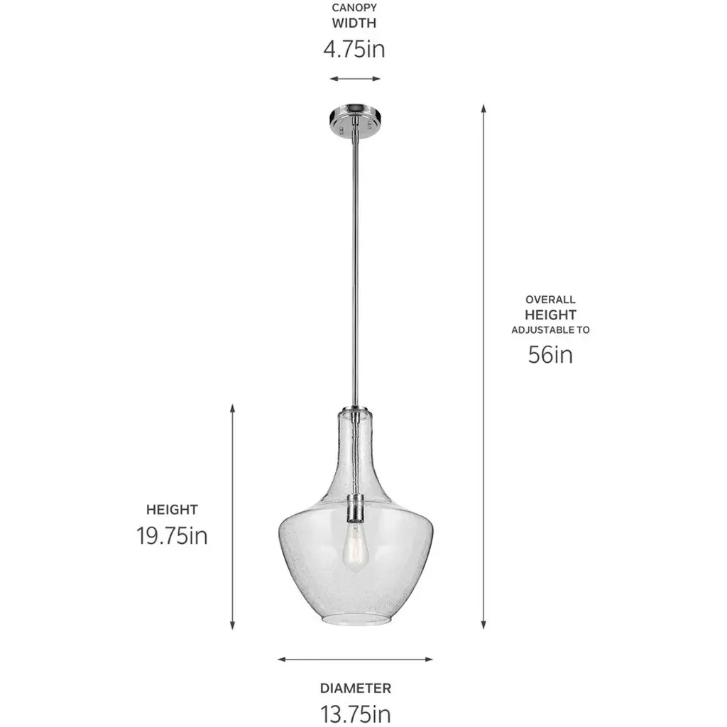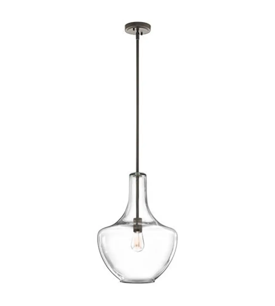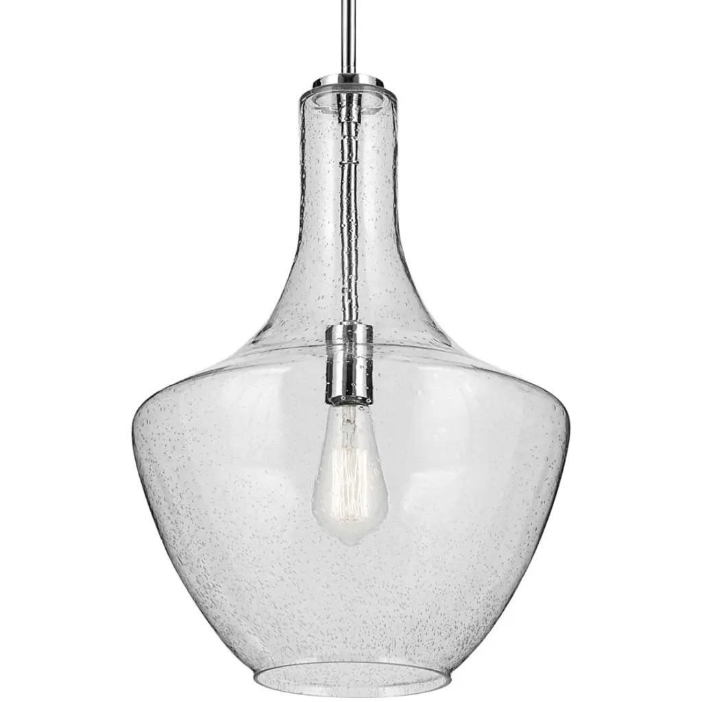 A modern style with minimal detailing, the Everly 1-light pendant easily elevates the style of soft modern environments. This elegant pendant offers a soft, curvilinear form and contemporary, clear seeded glass silhouette that provides ambient lighting to the entire room. As beautiful as it is versatile, adjust the hanging height to meet the needs of your space.
