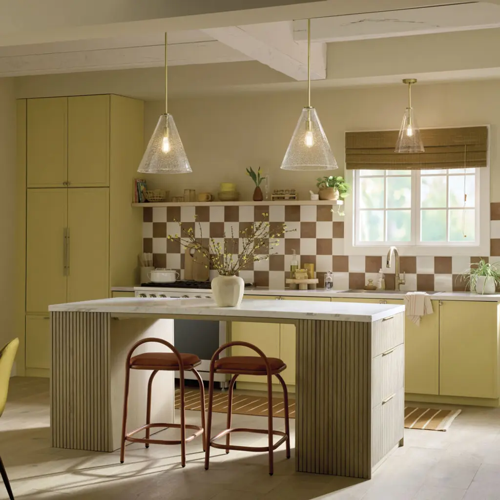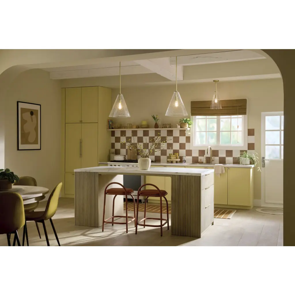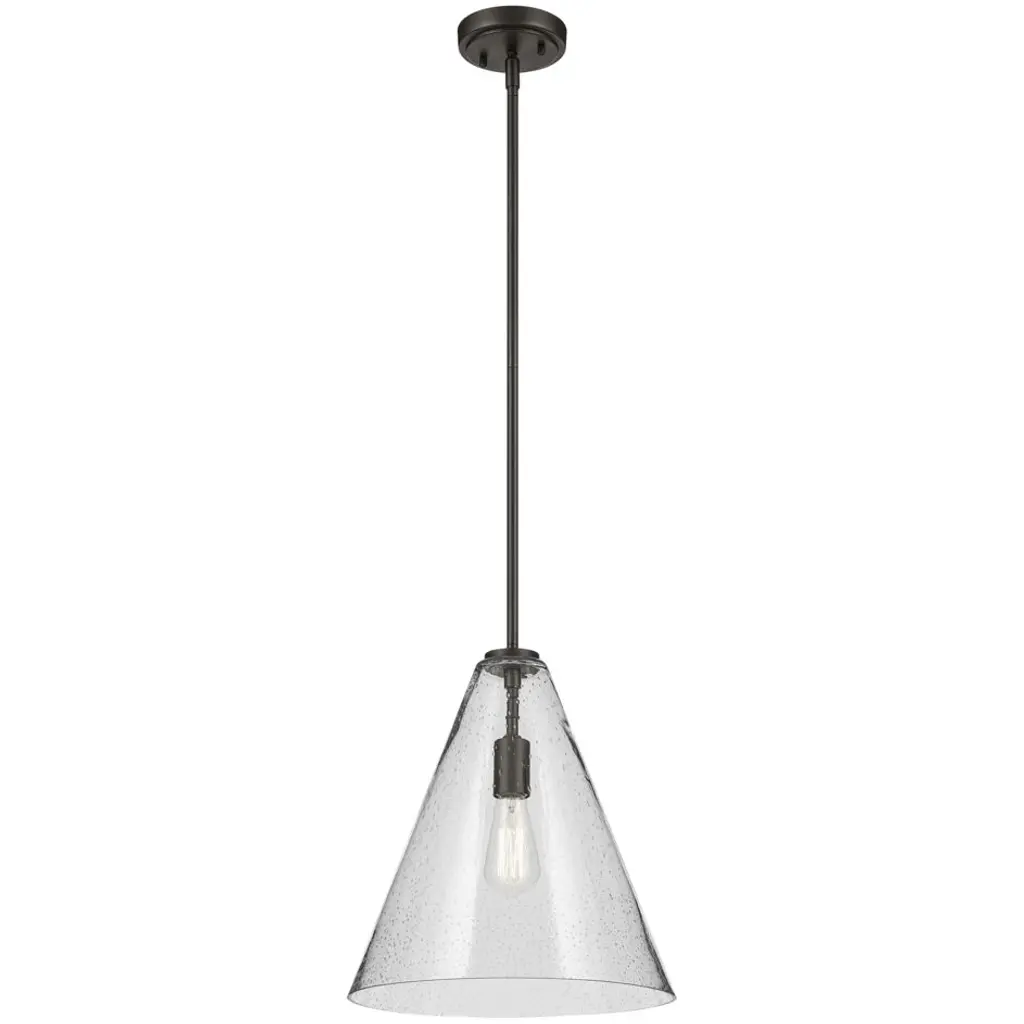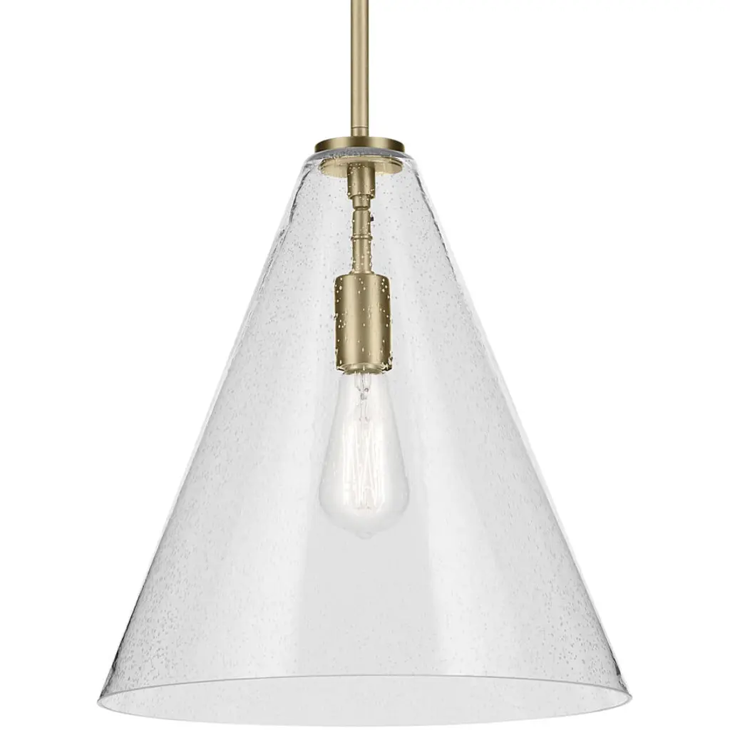 A modern style with minimal detailing, the Everly 1-light pendant easily elevates the style of soft modern environments. This elegant pendant offers a conical form and contemporary, clear seeded glass that creates a soft, ambient glow, adding warmth as it shines. As beautiful as it is versatile, adjust the hanging height to meet the needs of your space