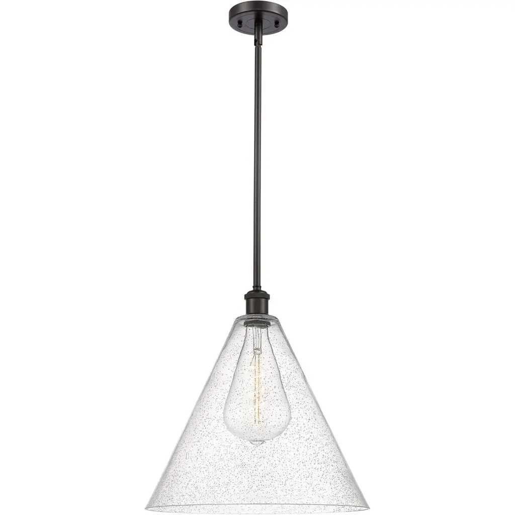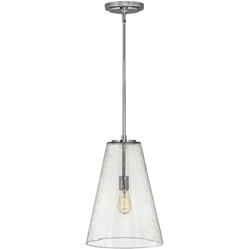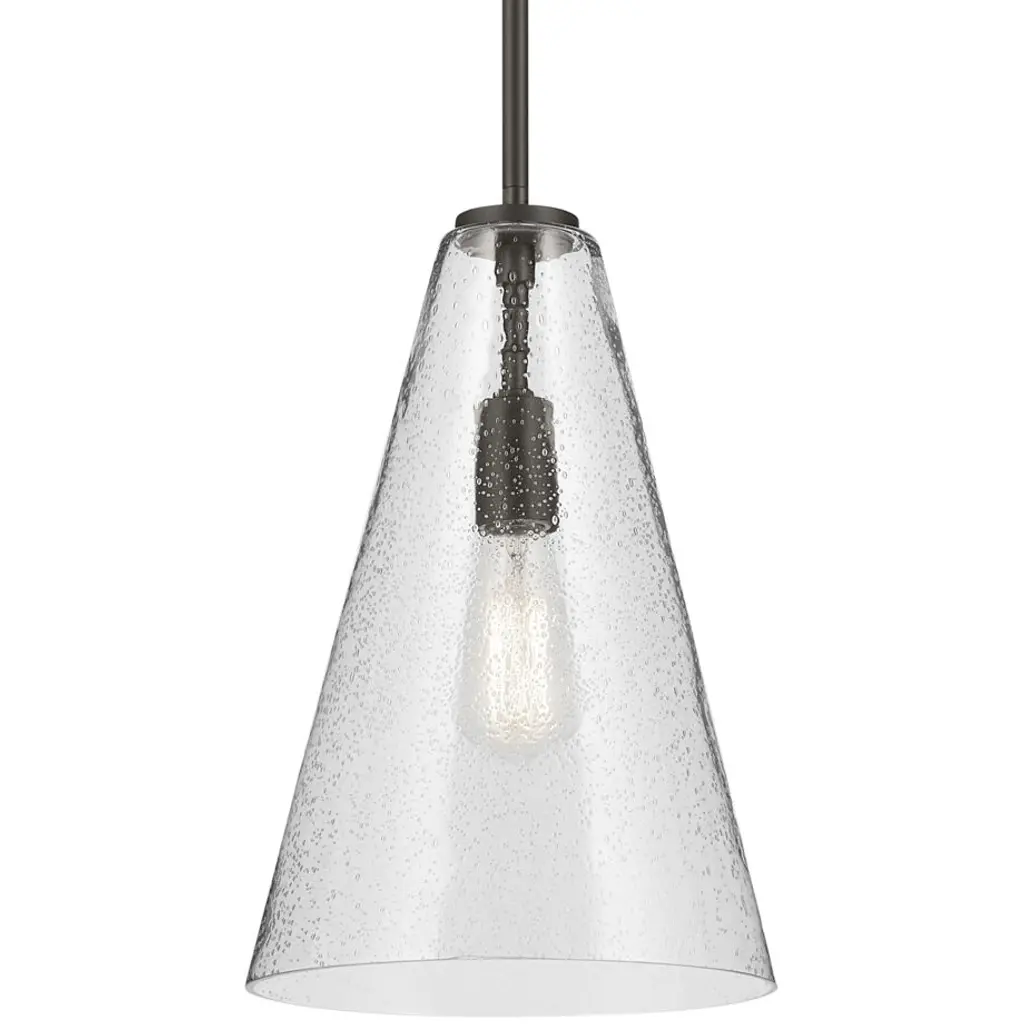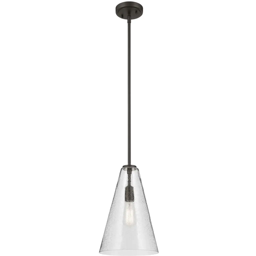 A modern style with minimal detailing, the Everly 1-light pendant easily elevates the style of soft modern environments. This elegant pendant offers a conical form and contemporary, clear seeded glass that creates a soft, ambient glow, adding warmth as it shines. As beautiful as it is versatile, adjust the hanging height to meet the needs of your space