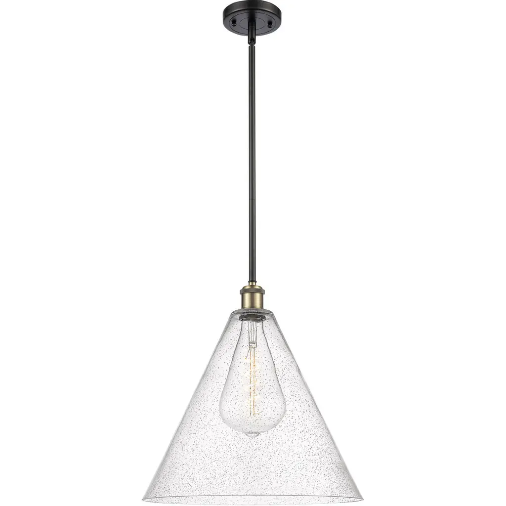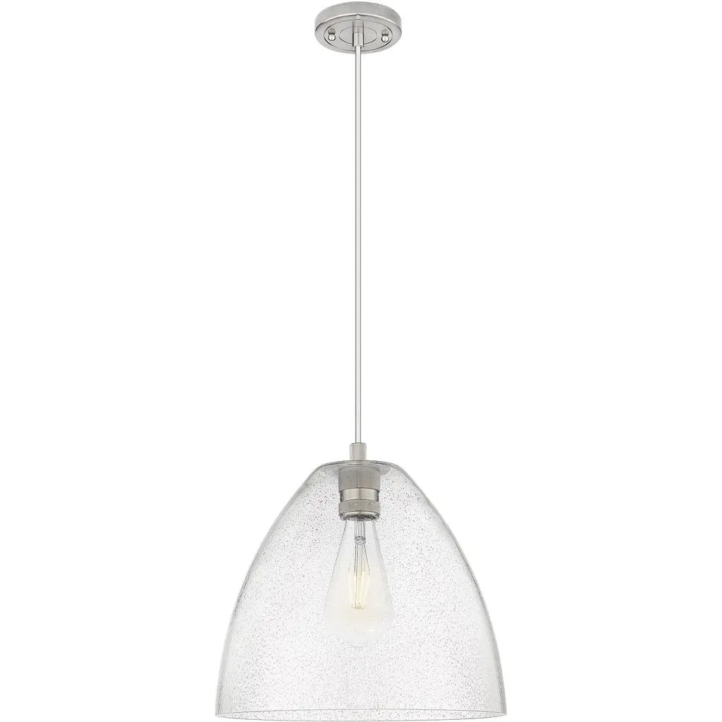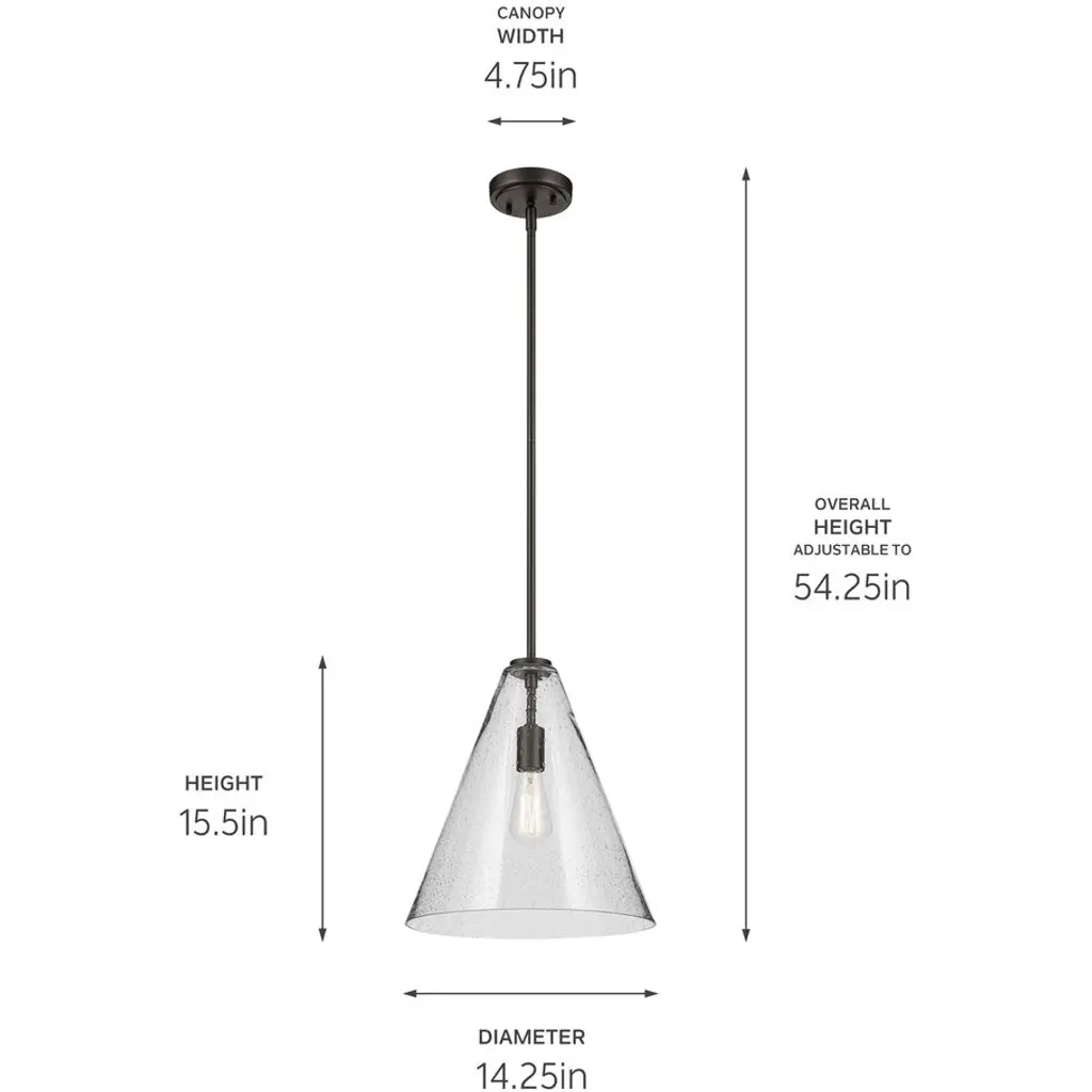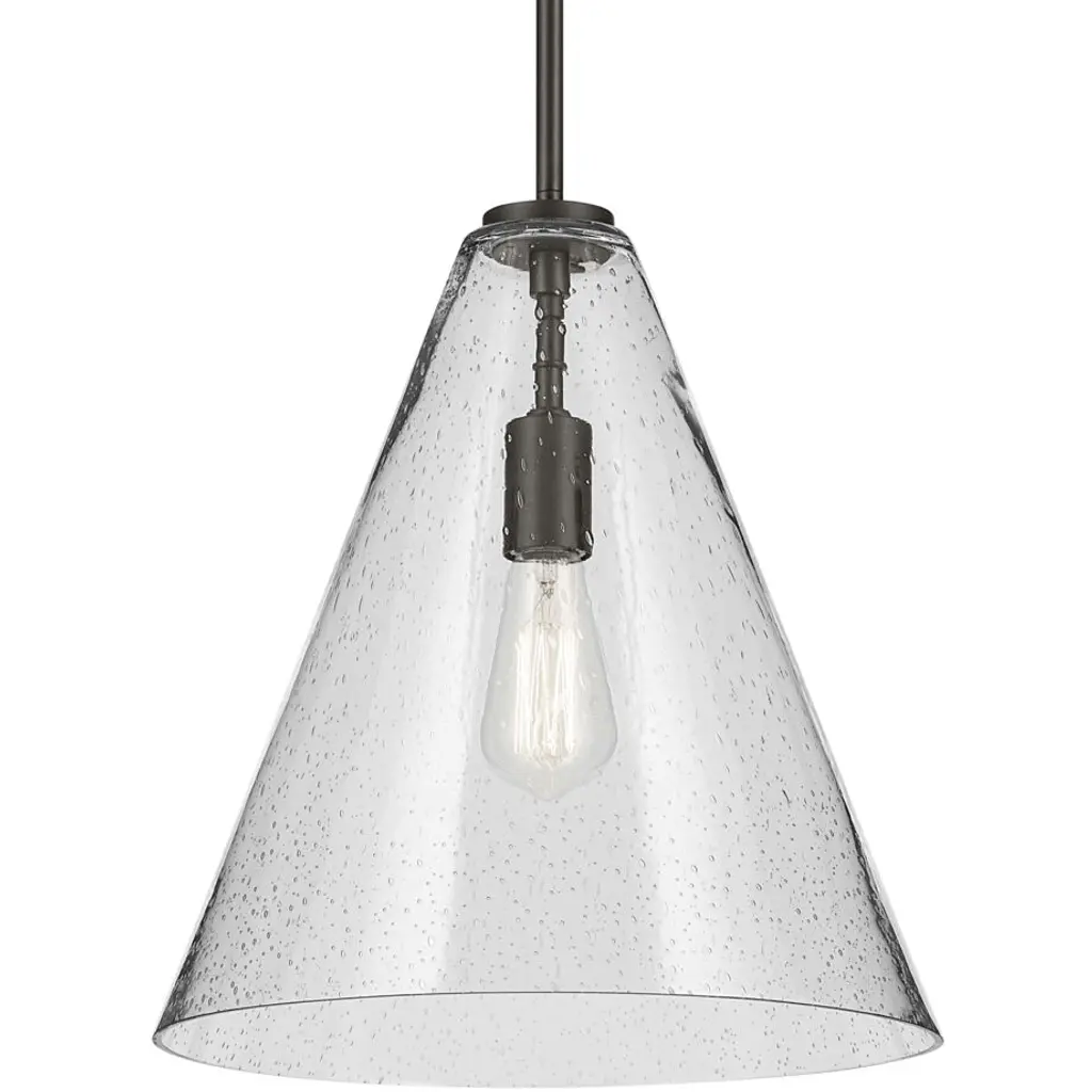 A modern style with minimal detailing, the Everly 1-light pendant easily elevates the style of soft modern environments. This elegant pendant offers a conical form and contemporary, clear seeded glass that creates a soft, ambient glow, adding warmth as it shines. As beautiful as it is versatile, adjust the hanging height to meet the needs of your space.