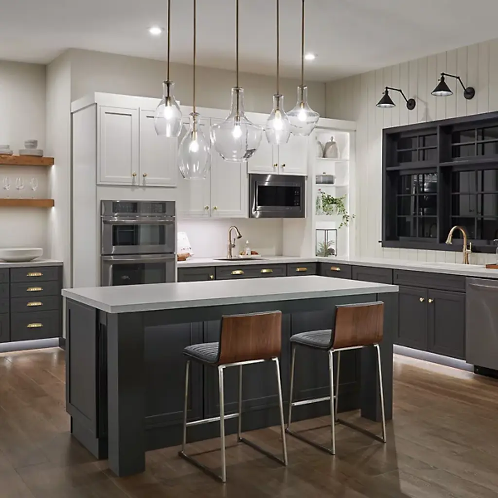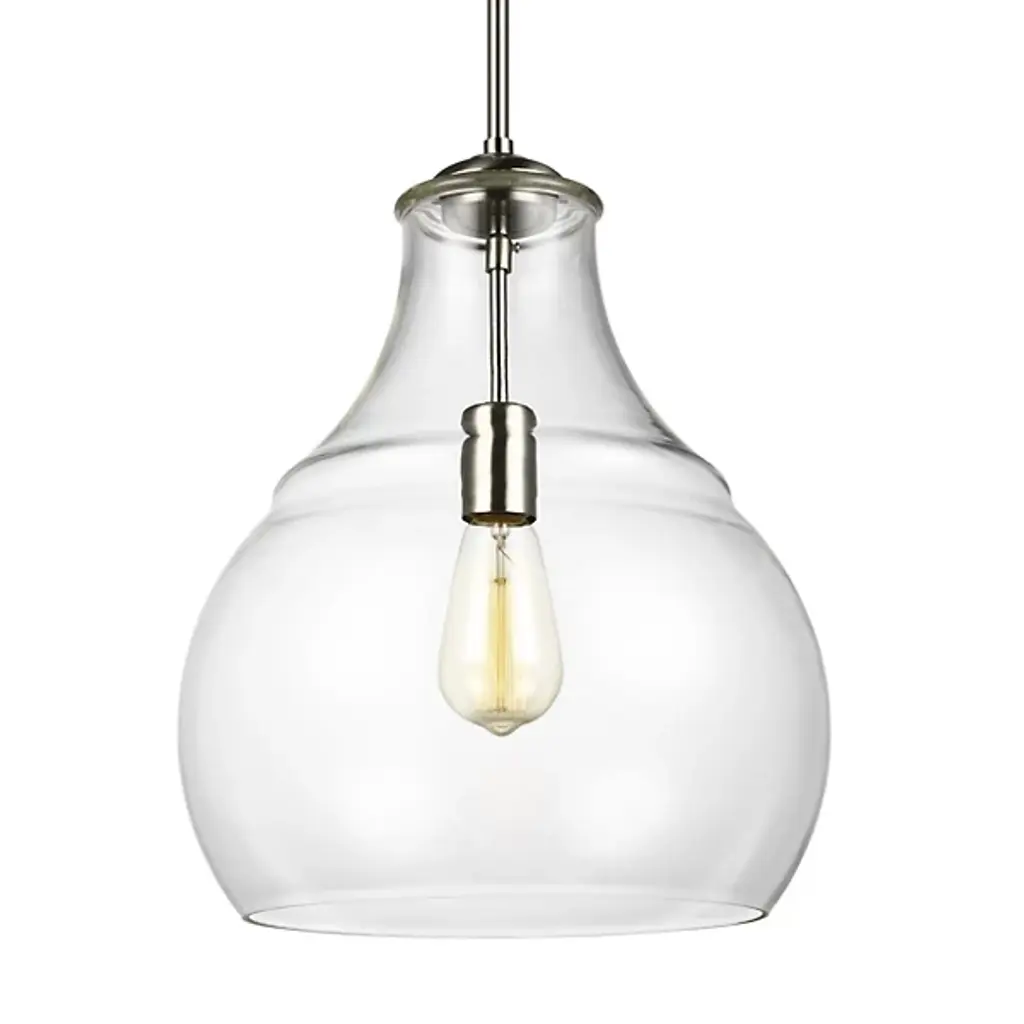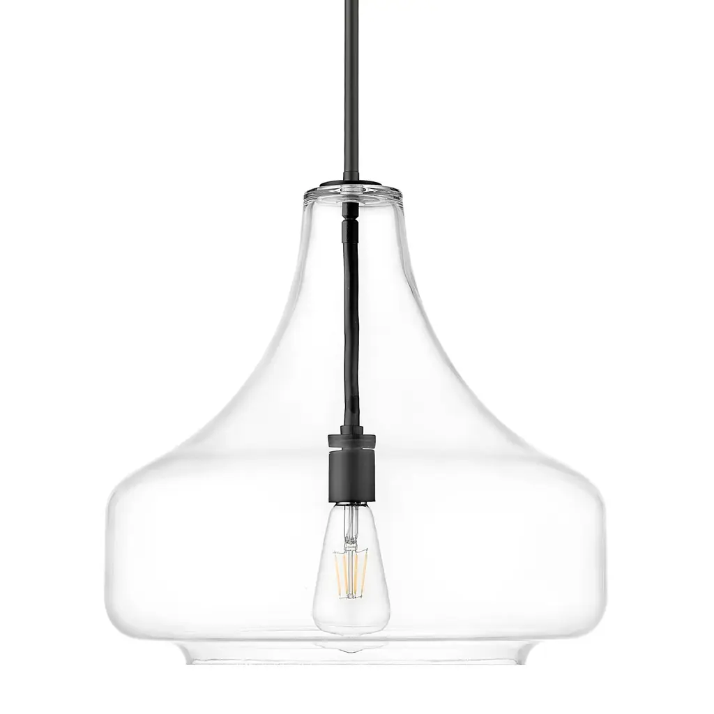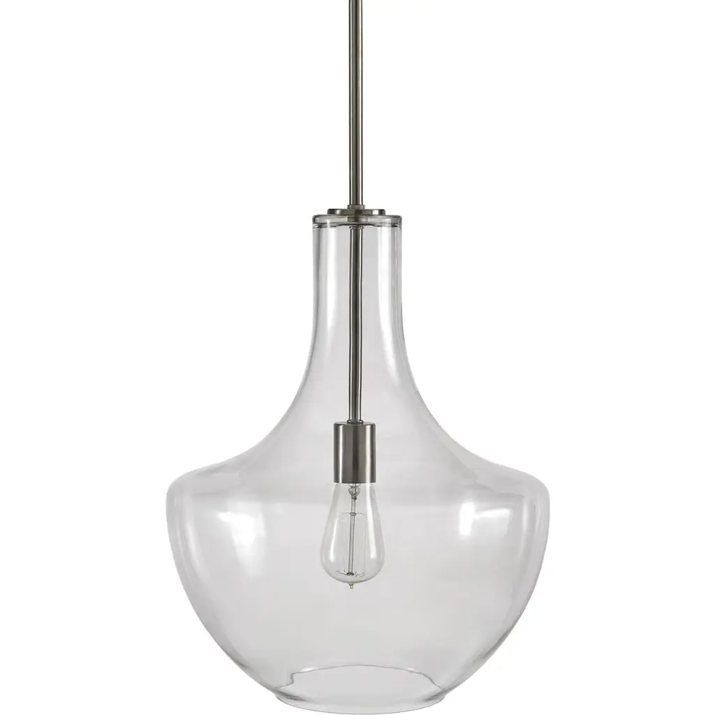 Blown decorative glass containers inspired the design of the highly decorative Kichler Everly Pendant. The wide curves of the Clear glass shade evoke the shape of a classic table lamp and provide a pleasingly soft outline around the exposed bulb within. For warm, vintage twinkle, use with a classic Edison incandescent bulb.