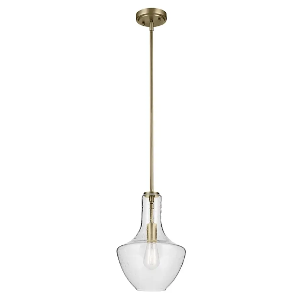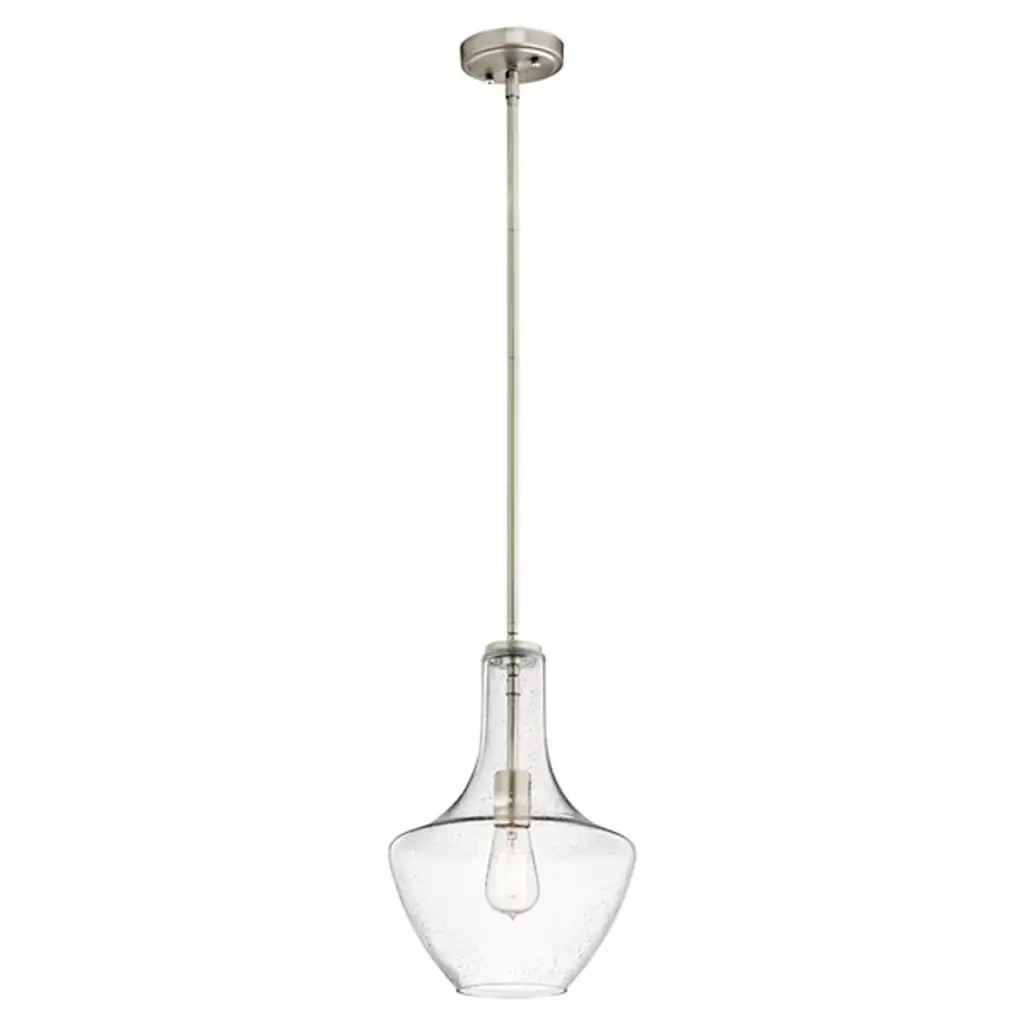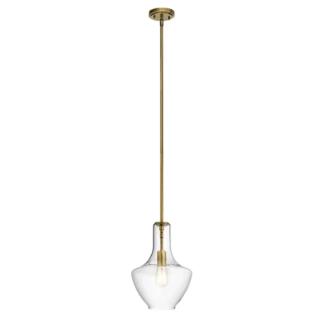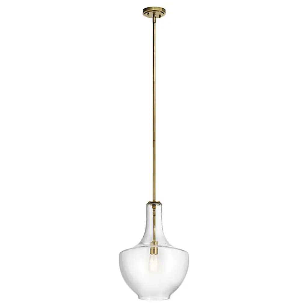 Blown decorative glass containers inspired the design of the delicately decorative Kichler Everly Teardrop Pendant. The wide curves of the Clear glass shade evoke the shape of a classic table lamp and provide a pleasingly soft outline around the exposed bulb within. For warm, vintage twinkle, use with a classic Edison incandescent bulb.