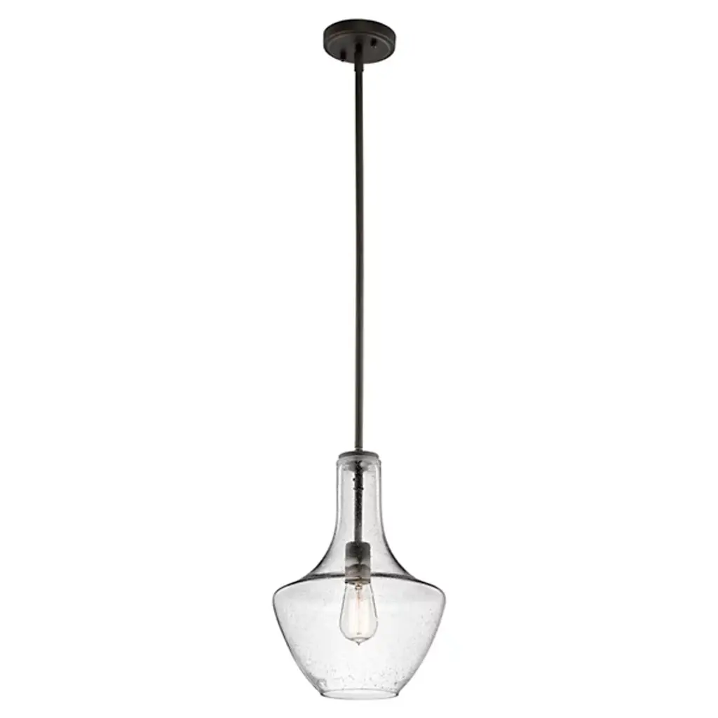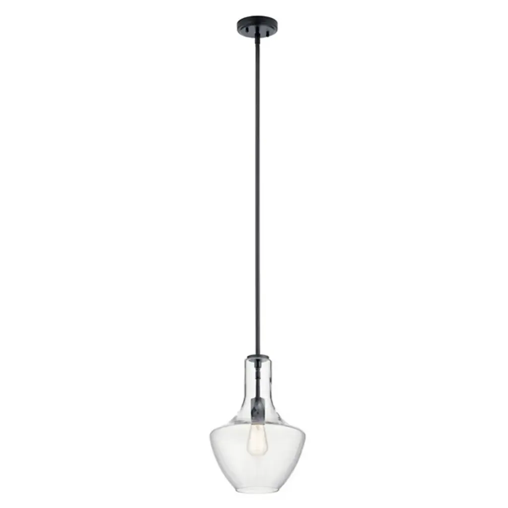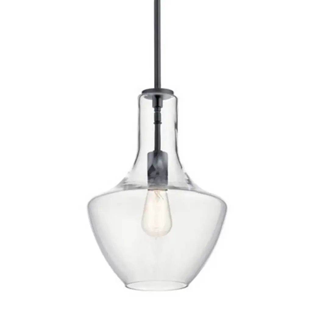 Blown decorative glass containers inspired the design of the delicately decorative Kichler Everly Teardrop Pendant. The wide curves of the Clear glass shade evoke the shape of a classic table lamp and provide a pleasingly soft outline around the exposed bulb within. For warm, vintage twinkle, use with a classic Edison incandescent bulb.