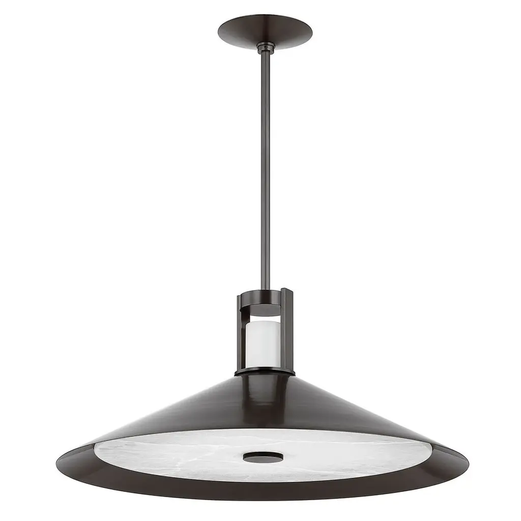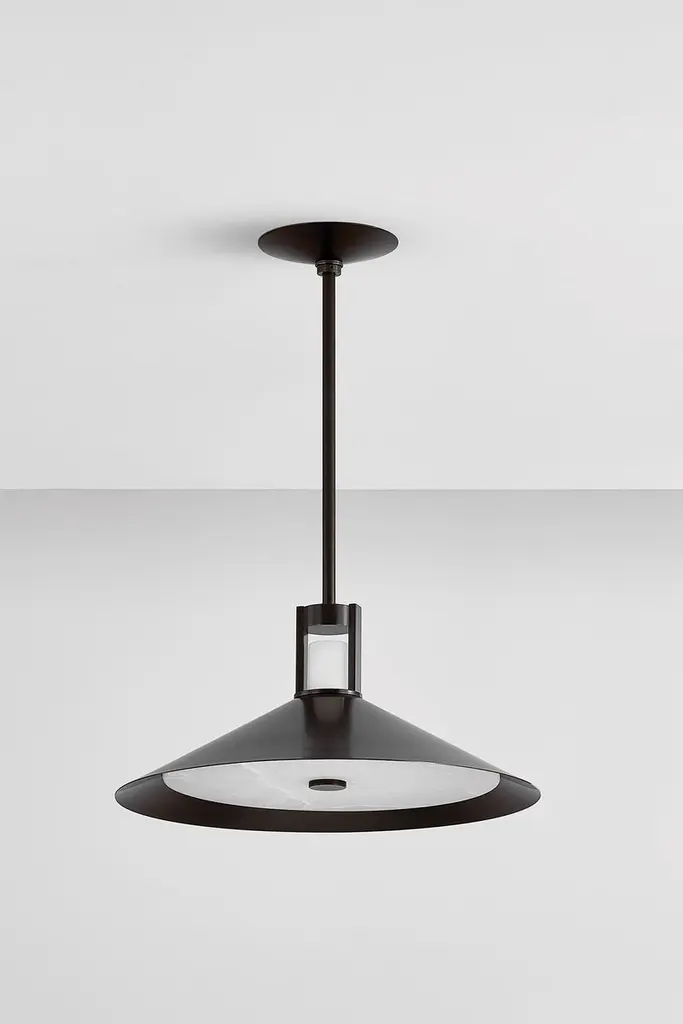 A luxurious basic for modern homes, Evie features a sharply tapered conical shade and energy-efficient LED technology. When illuminated, the light washes over both the flat alabaster diffuser as well as the clerestory, flooding your living space with a soft glow. Available in two sizes and finishes.*Due to the one-of-a-kind nature of the medium, exact colors and patterns may vary slightly from the image shown.