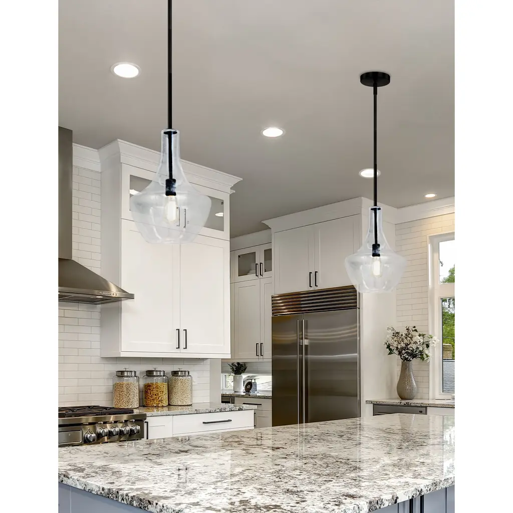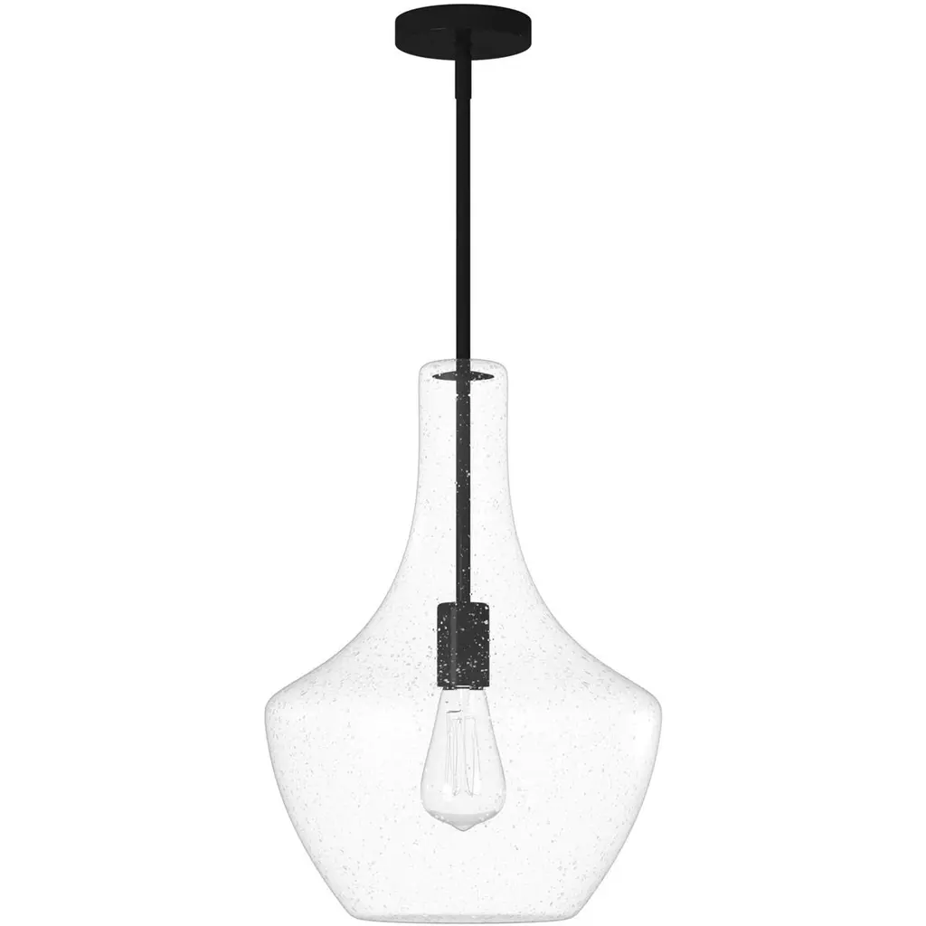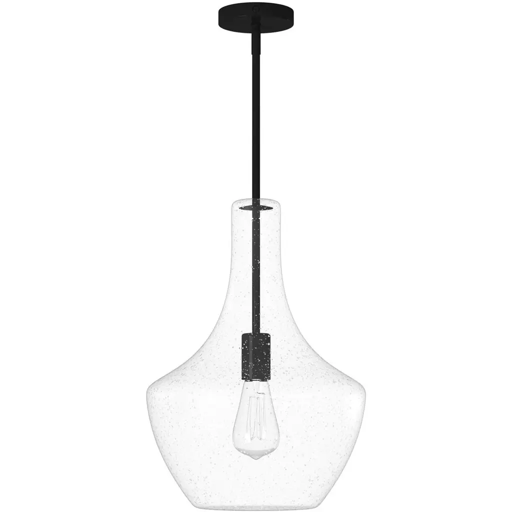 Fusion Harlow 14" Pendant - Matte Black Finish - Seeded Glass Shade