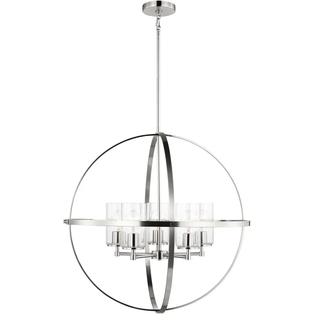 The silhouette of the modern Exmoore lighting collection features an interlocking, spherical steel frame, which harkens back to the Unisphere constructed for the 1964 New York World's Fair. The minimalist Exmoore Collection draws the eye to the soft, warm glow of the light emitted from the candelabra candle tubes. All fixtures are offered in Brushed Nickel, Midnight Black and Satin Brass finish. Incandescent and ENERGY STAR-qualified LED lamping are available; all fixtures are California Title 24 compliant.