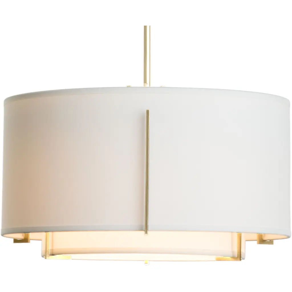 The double-shade design of this small pendant lamp delivers the sleek, clean and minimalistic elegance the Exos Collection is known for. Concentric drum shades are cradled by hand-forged steel bars.