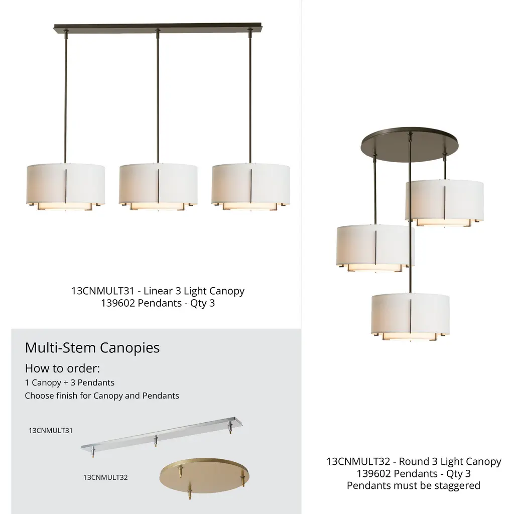 The double-shade design of this small pendant lamp delivers the sleek, clean and minimalistic elegance the Exos Collection is known for. Concentric drum shades are cradled by hand-forged steel bars.