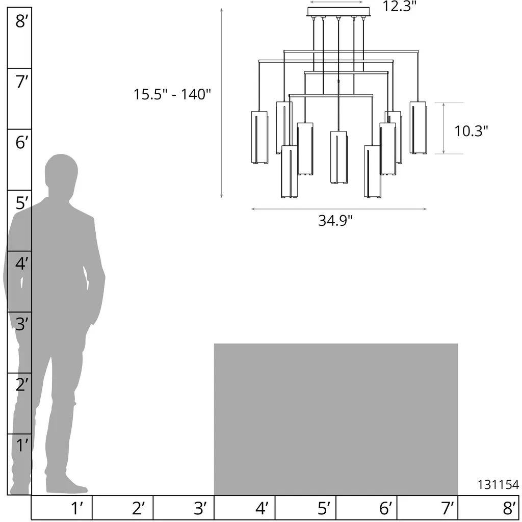 Exos 10 Light 34.9 Inch Ink Mobile Pendant Ceiling Light In Clear
