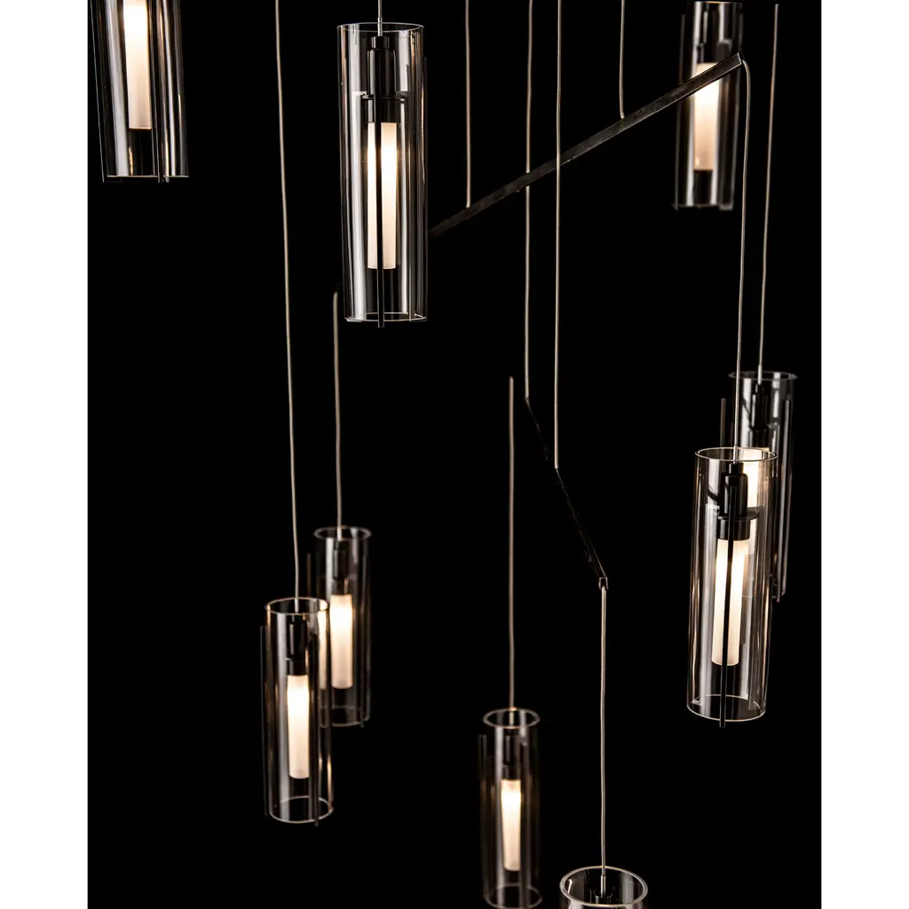 The Exos Collection is known for its classic designs. With the Exos 10-Light Mobile, it takes a contemporary path with a minimized canopy and delicate metal tubes that guide cables to allow for a highly-adjustable, customized fixture. Ten tall glass shades are each held by three handcrafted vertical metal pieces that secure the glass. A beautiful balance of art and light, this Exos spreads a stunning illumination in any space.