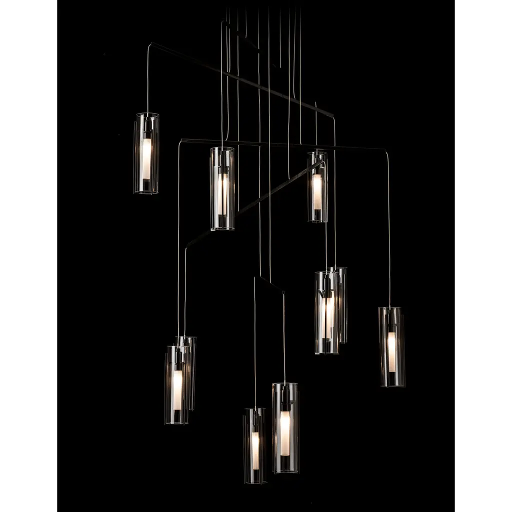 The Exos Collection is known for its classic designs. With the Exos 10-Light Mobile, it takes a contemporary path with a minimized canopy and delicate metal tubes that guide cables to allow for a highly-adjustable, customized fixture. Ten tall glass shades are each held by three handcrafted vertical metal pieces that secure the glass. A beautiful balance of art and light, this Exos spreads a stunning illumination in any space.