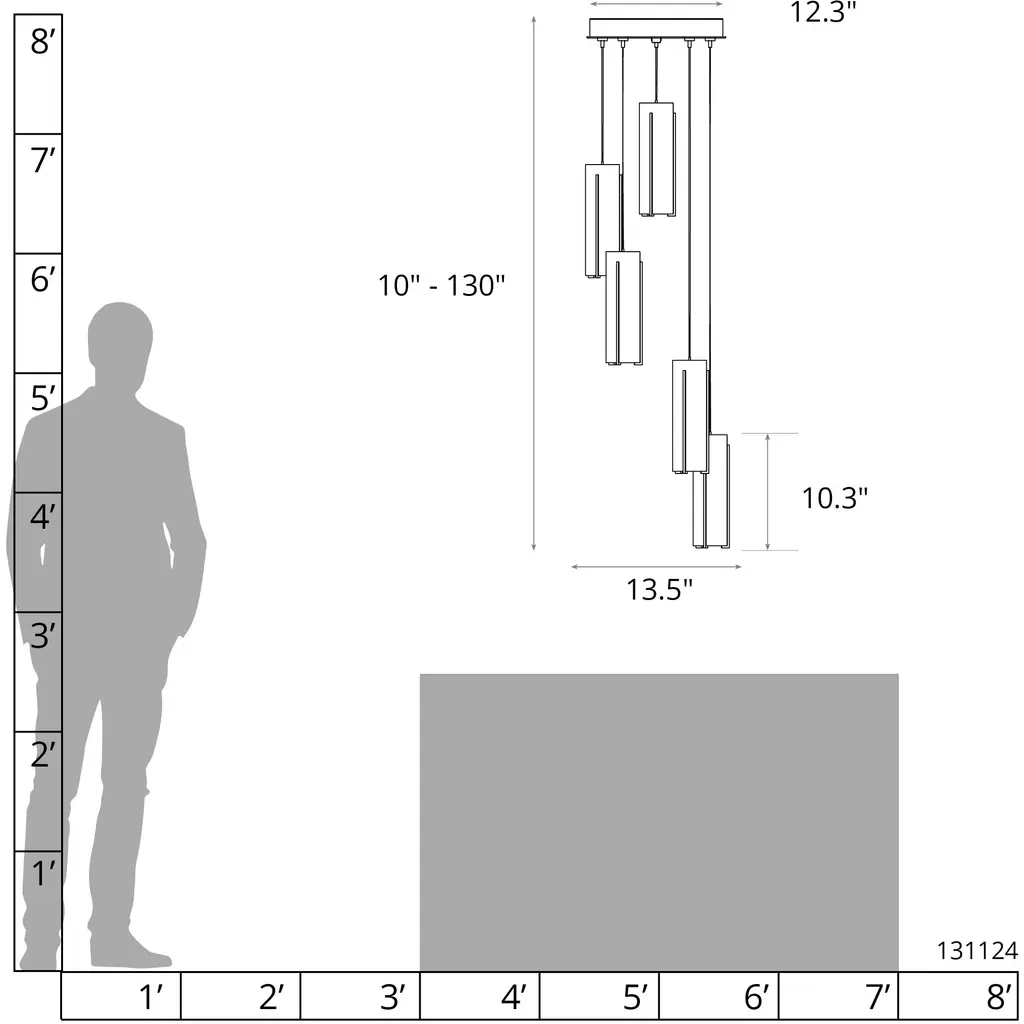 The Exos Collection has a new addition with five cascading pendants clustered on a round multi-port canopy. Individual pendant lengths are customizable to suit the space, making this Exos Glass 5-Light pendant and easy choice. With a substantial range of cable length, this Exos Glass ceiling pendant could make a dramatic statement as a semi-flush or as a cascading focal piece. Tall, vertical, handcrafted steel pieces embrace a glass shade in a choice of opal or clear glass, with an opal inner diffuser.