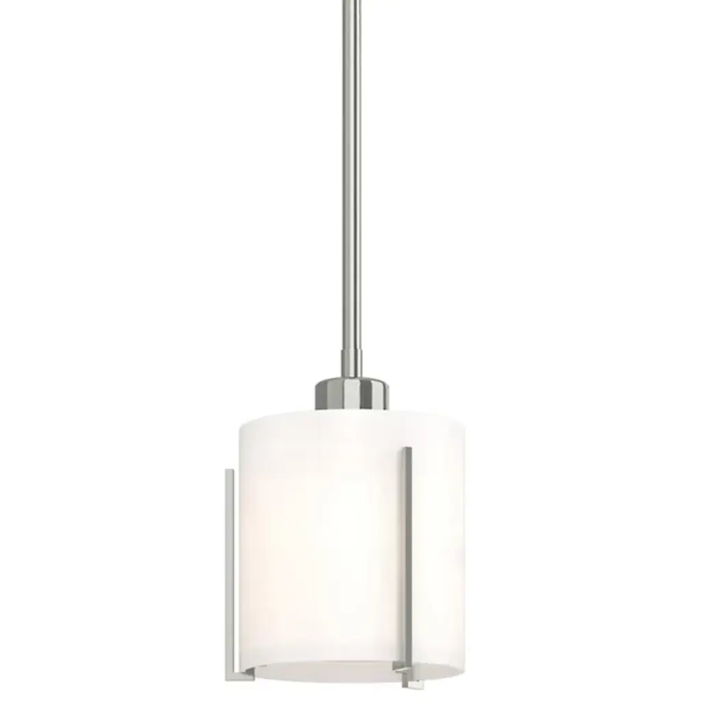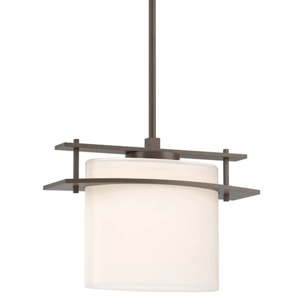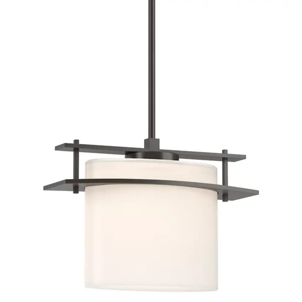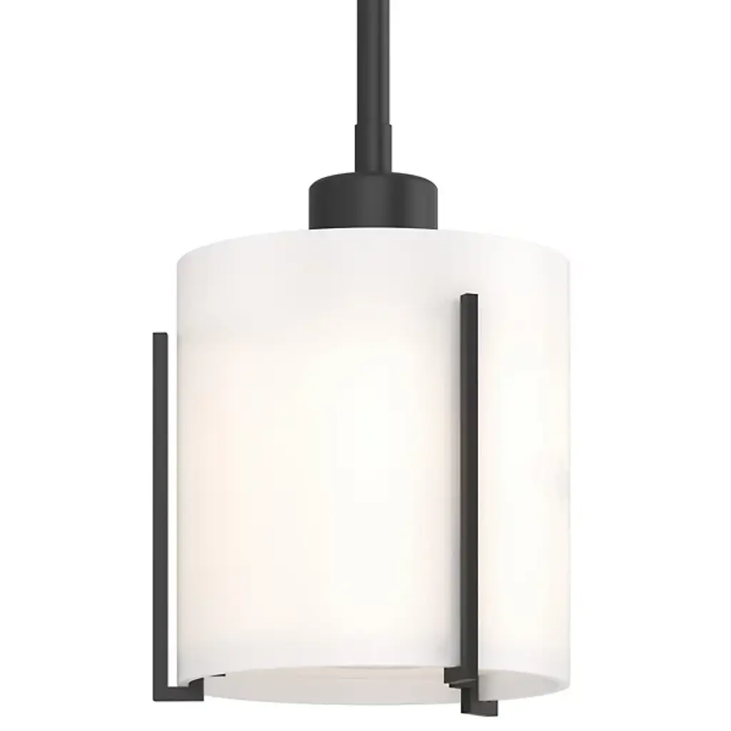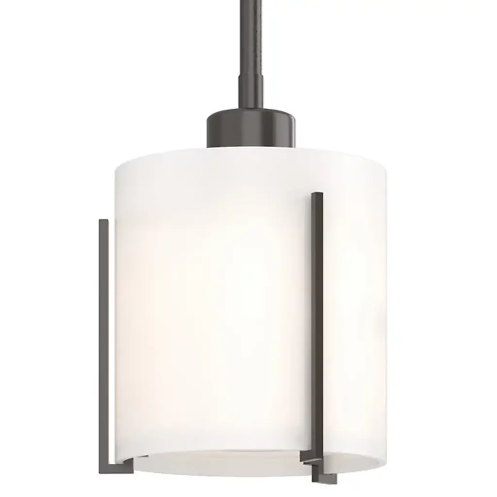 Refined lighting for sophisticated interiors. The Exos Pendant by Hubbardton Forge pairs a smooth cylinder of glass with hand-forged steel supports. The slender bent bars hold the shade securely while also giving the overall design a subtle, architectural feel. This clean design of this pendant makes it complementary to a range of design styles and application types; use it to illuminate a mountain modern kitchen, transitional bathroom, arts & crafts bedroom or other space.