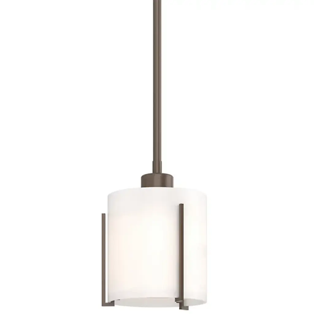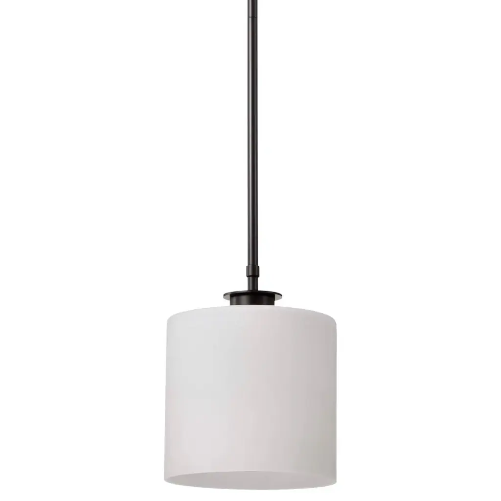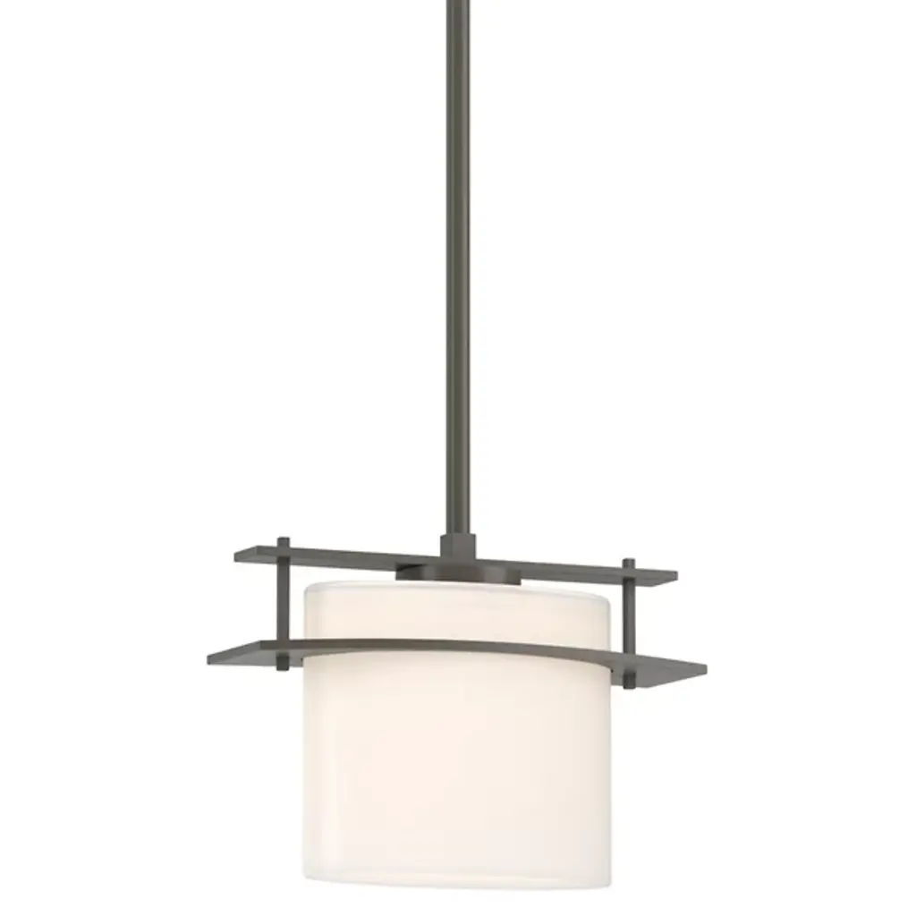 Refined lighting for sophisticated interiors. The Exos Pendant by Hubbardton Forge pairs a smooth cylinder of glass with hand-forged steel supports. The slender bent bars hold the shade securely while also giving the overall design a subtle, architectural feel. This clean design of this pendant makes it complementary to a range of design styles and application types; use it to illuminate a mountain modern kitchen, transitional bathroom, arts & crafts bedroom or other space.