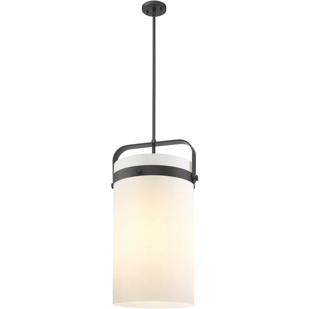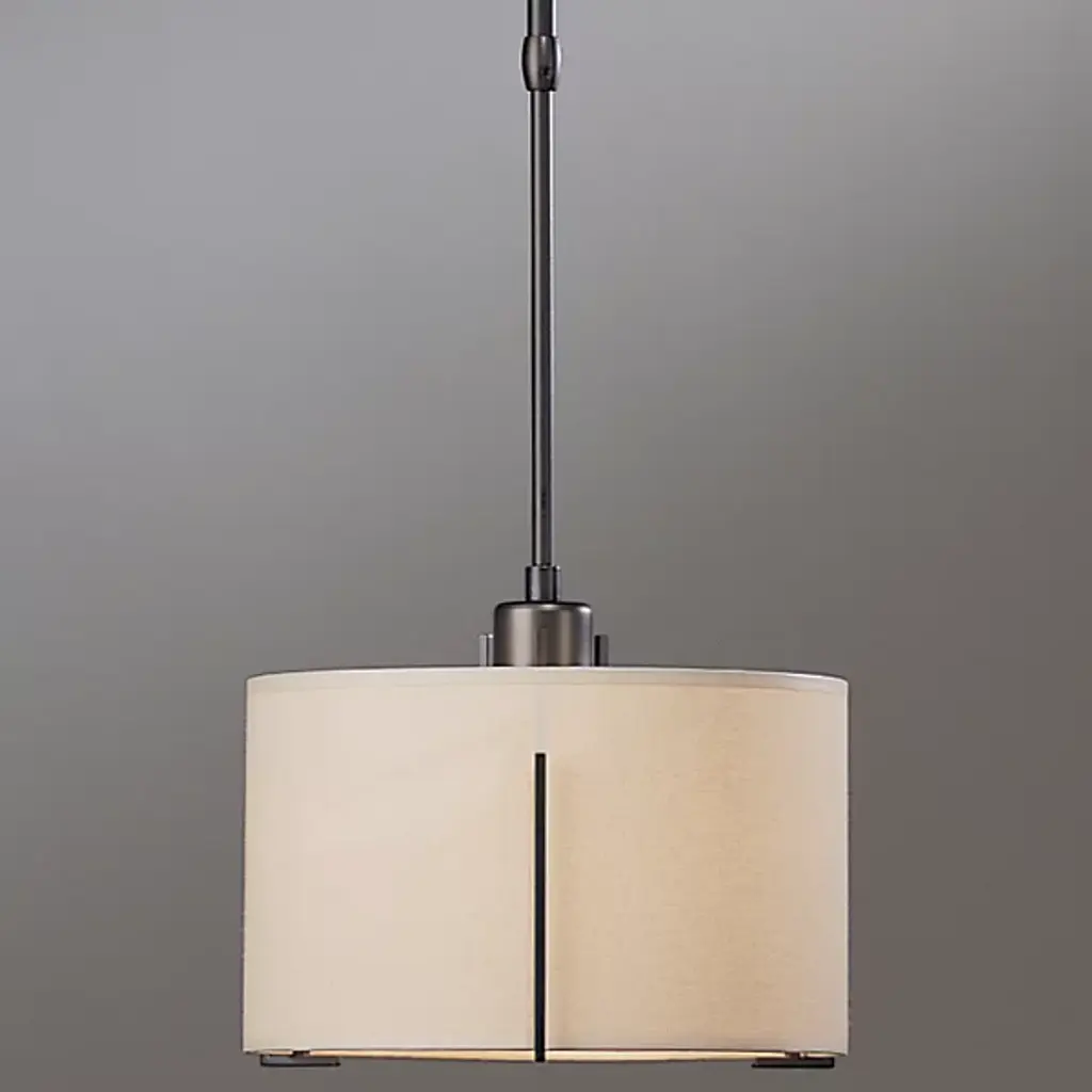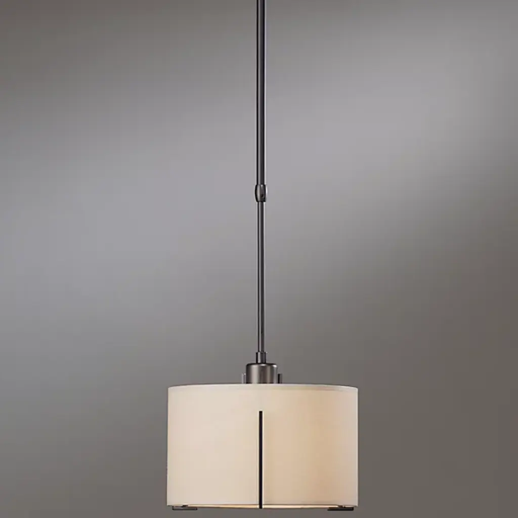 With a refreshing take on a traditional style, the Exos Single Small Pendant from Hubbardton Forge brings retro appeal to modern spaces. Dropped from a circular canopy by a slender rod, a drum shade forms around its inner light source. A white, smooth diffuser encloses the fixture’s end and conceals its incandescent lamping to filter its glow. Handcrafted steel bars cradle the shade and add a clean accent, completing the piece’s regal style.