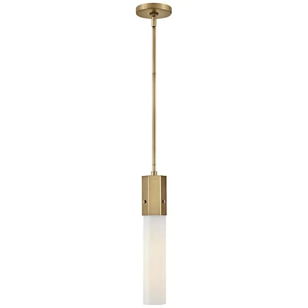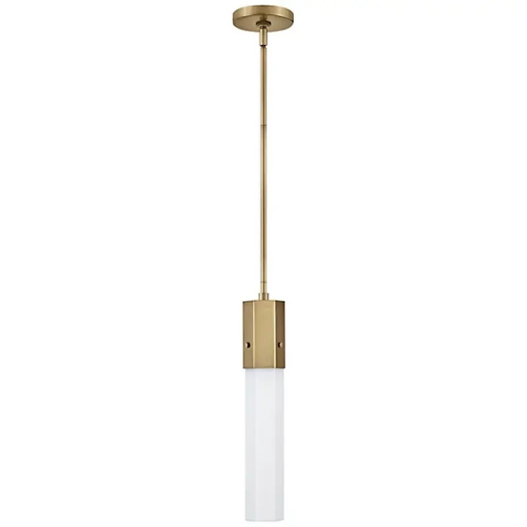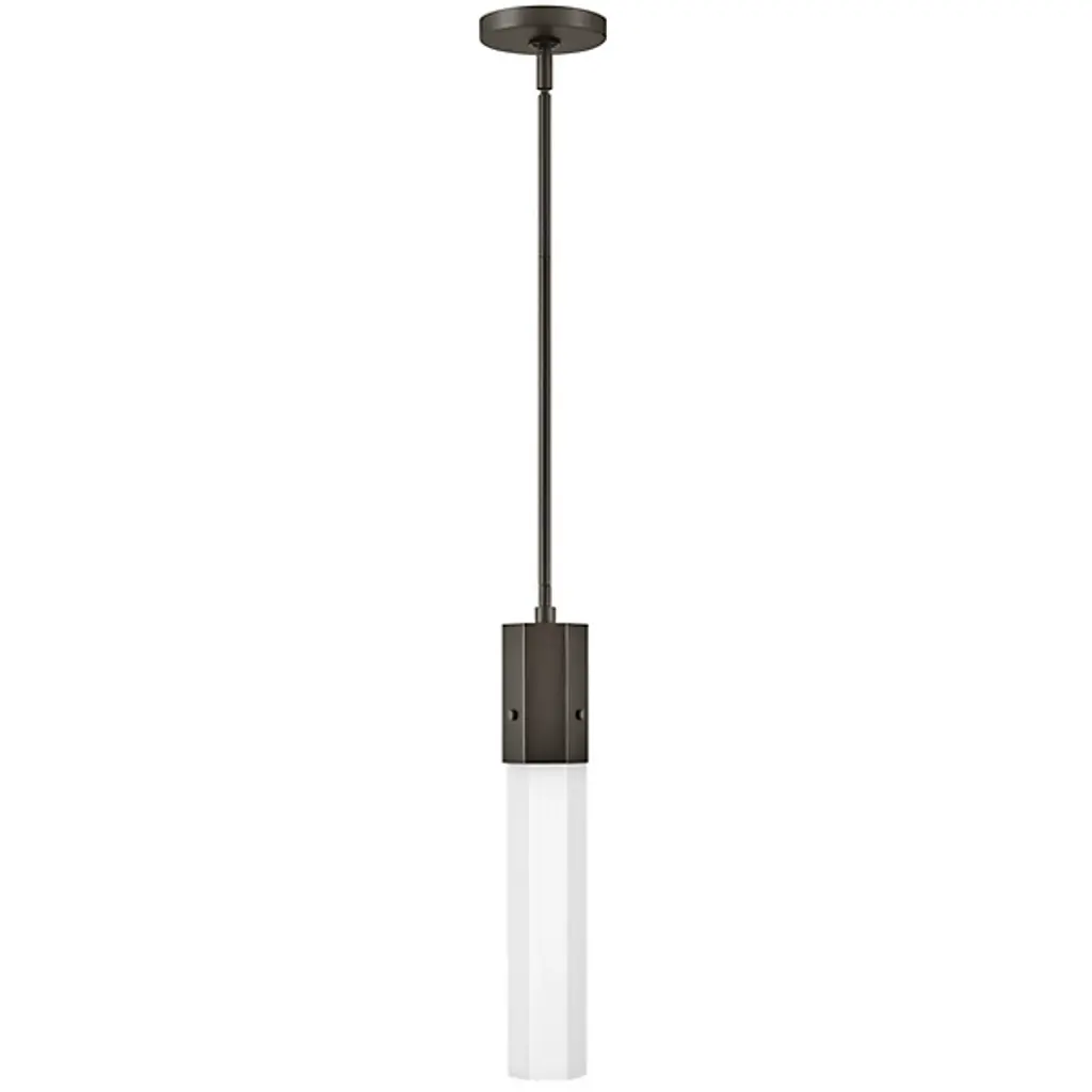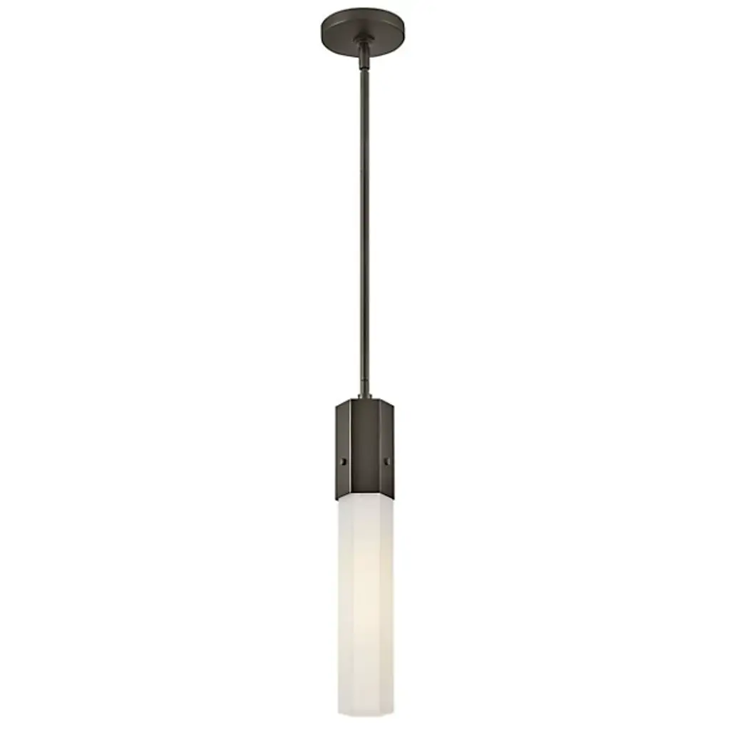There's no forgetting the various tones covering the sharp Facet Mini Pendant from Hinkley Lighting. It's a looker from all viewing angles. Sloped ceiling adaptable, the pendant packs ultra-fine downrods of different heights to complement one's room. The steel holder and the etched glass hanging below share an edgy hexagonal shape that contrasts in color. The glass hides the lamp to reduce glare. The lamp's rich light glazes the glass and surfaces directly below.