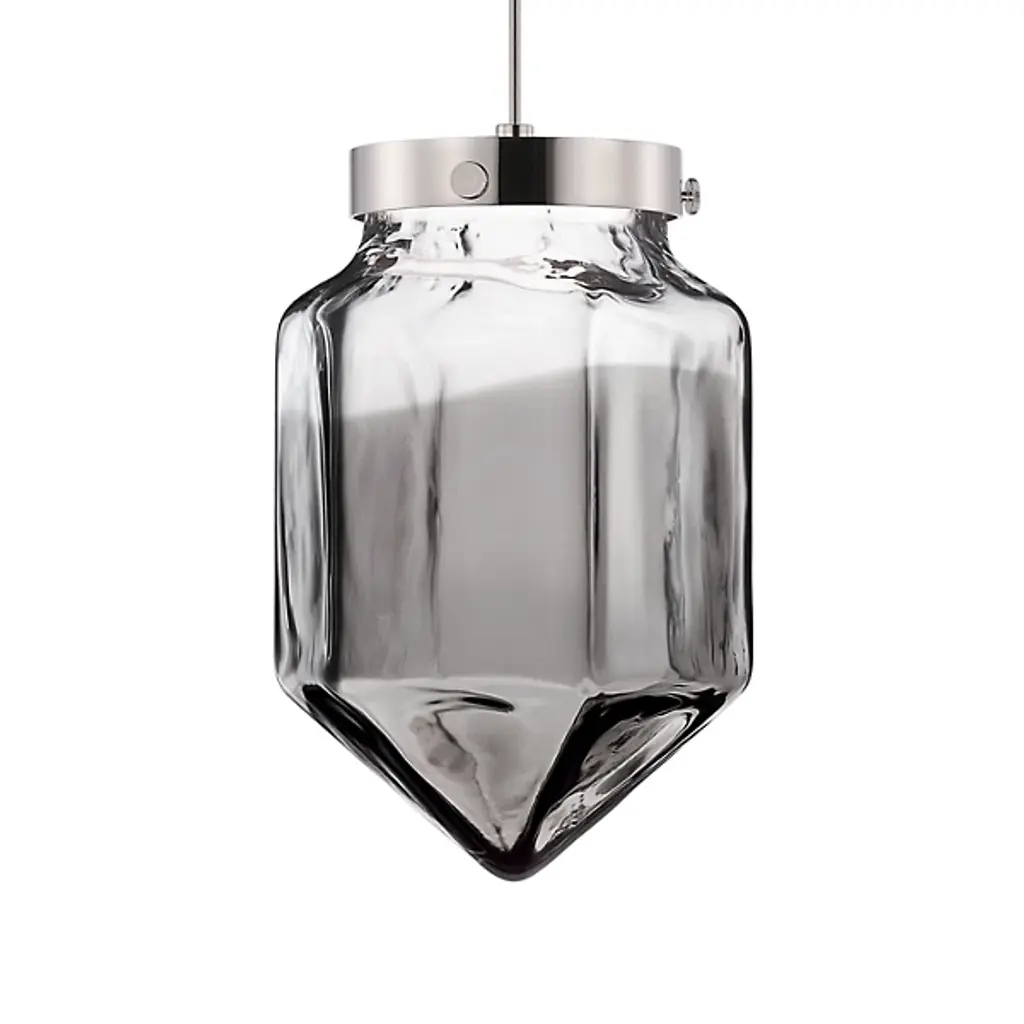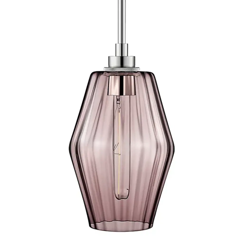 The Facet Petite Pendant from Niche artfully matches contemporary materials with artisanal craftsmanship for lasting brilliance. Designed by Jeremy Pyles, it’s suspended by a slim coaxial cable that nearly disappears from view yet sturdily suspends custom LEDs within a round metal mount. A shade of cylindrical handblown glass anchored by small knobs studding the exterior edge of the mount filters direct light from the energy-efficient lamping, creating a mellow, radiant warmth.