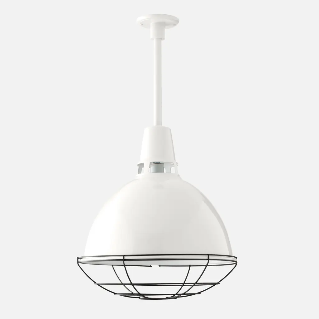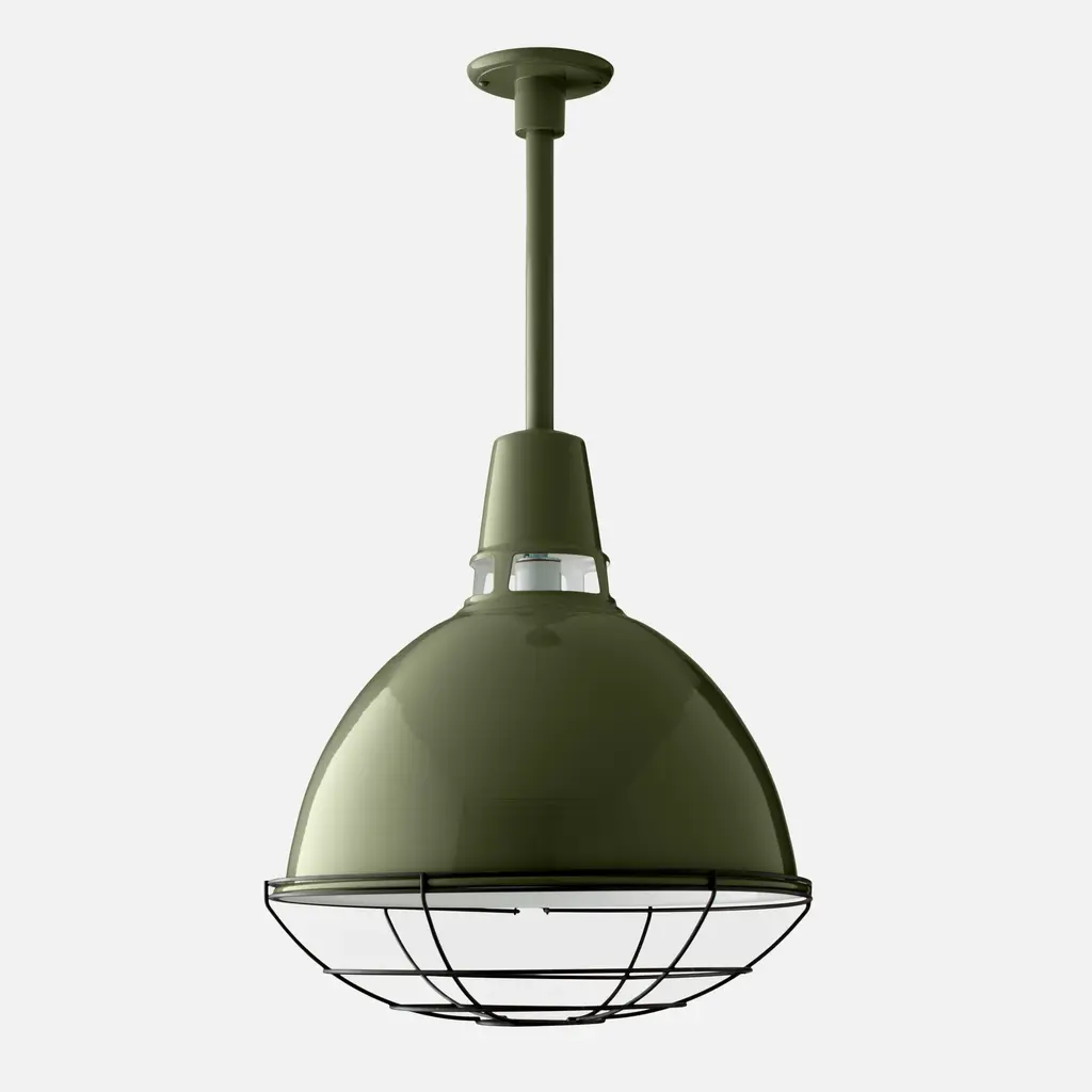 As part of our Benchmade line, the Factory Light 7 Rod Pendant is a faithful Schoolhouse take on a classic industrial fixture style first made popular in the 1930s. Crafted from hand-spun steel and powder-coated in-house at our Portland factory, this oversized pendant features an extra-wide bell-shaped shade for maximum light output. Top cutouts add a streamlined design detail while allowing excess heat to escape. Produced on an RLM tool made exclusively for Schoolhouse, it’s a striking solution for high ceilings, open floor plans, and large-scale spaces alike.Read our guides on how to hang pendants and chandeliers and how to layer different types of lighting.