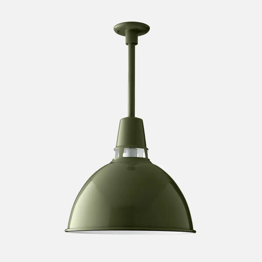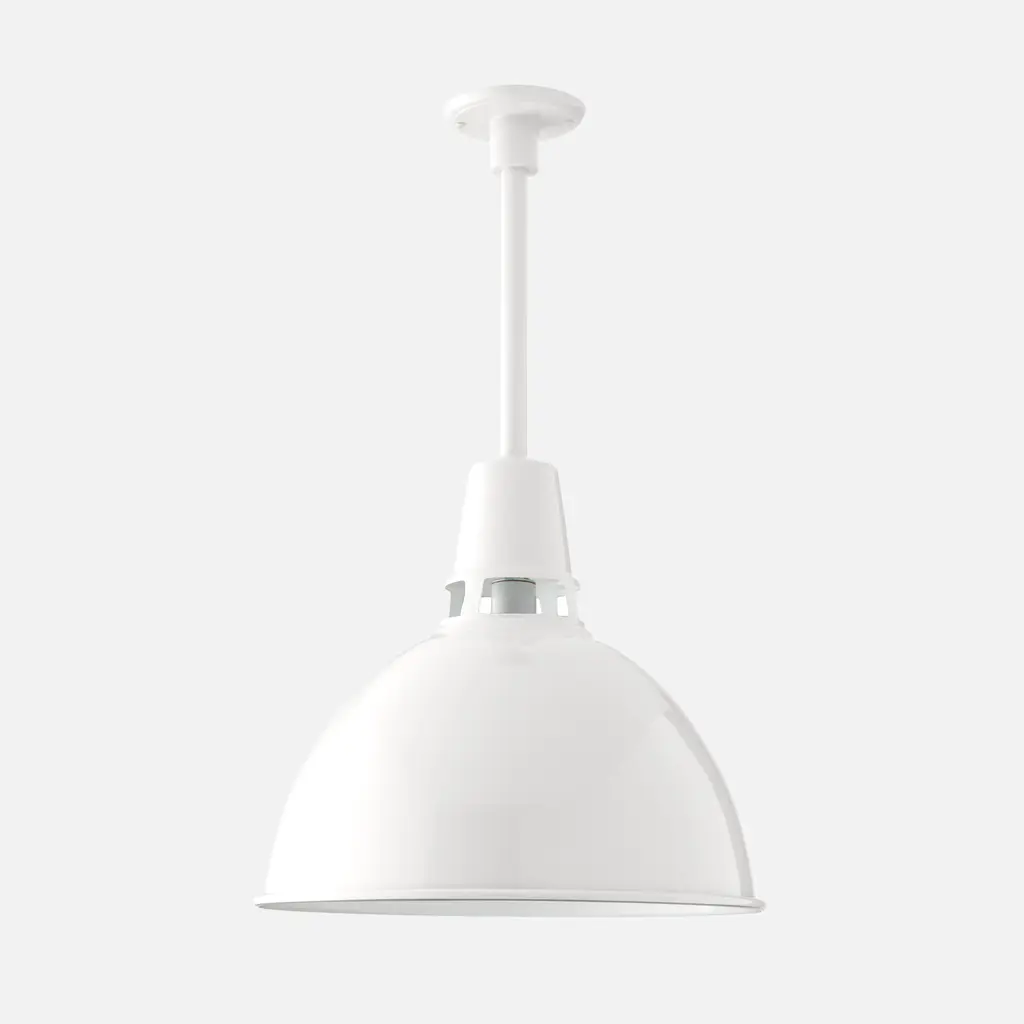 As part of our Benchmade line, the Factory Light 7 Rod Pendant is a faithful Schoolhouse take on a classic industrial fixture style first made popular in the 1930s. Crafted from hand-spun steel and powder-coated in-house at our Portland factory, this oversized pendant features an extra-wide bell-shaped shade for maximum light output. Top cutouts add a streamlined design detail while allowing excess heat to escape. Produced on an RLM tool made exclusively for Schoolhouse, it’s a striking solution for high ceilings, open floor plans, and large-scale spaces alike.Read our guides on how to hang pendants and chandeliers and how to layer different types of lighting.