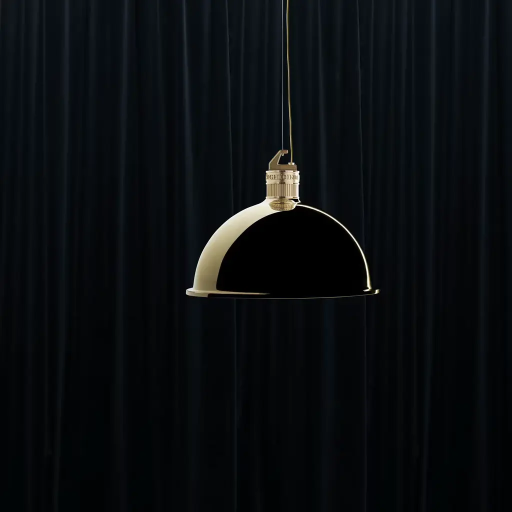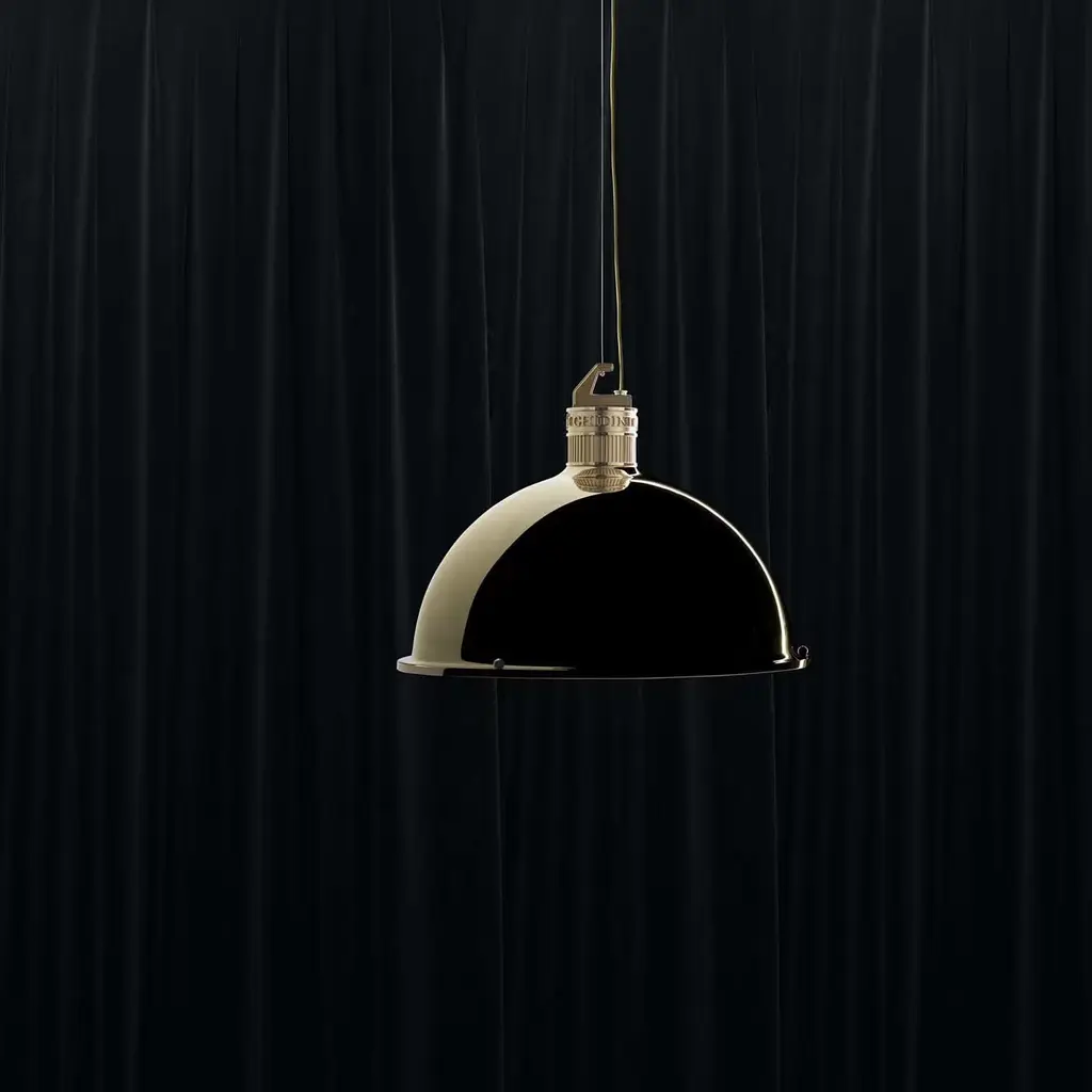 Elisa Giovannoni designed this pendant light (also available in a smaller version), inspired by the industrial lamp, a design icon that here has been revisited with a contemporary sensibility and made in brass.