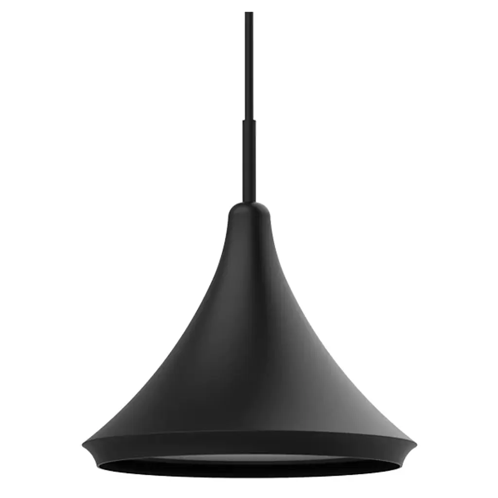 Get comfortable under the simple structure of the Falio Pendant Light by Huxe. An effortless mix of contemporary and minimalist design styles, it all starts from a disc ceiling mount, slightly rounded toward its lower surface, before dropping a cable stem to a socket tucked into a sweeping conical shade of heavy-duty spun aluminum. A beveled lower edge draws the eye naturally down to the lamping element, cleverly covered with an acrylic diffuser lens to blunt its direct brightness.